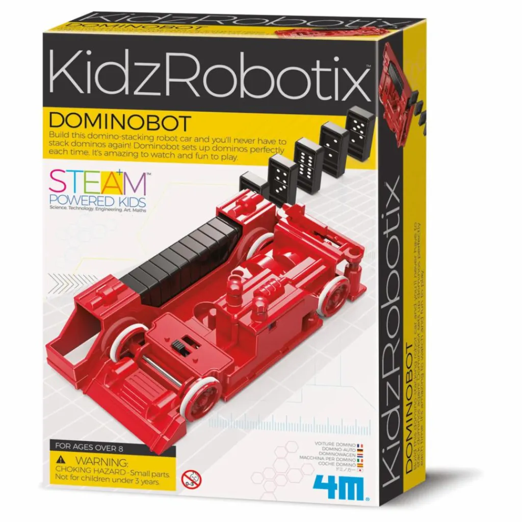 Ce kit de jeu permettra à votre enfant de fabriquer une voiture robot pour placer des dominos.