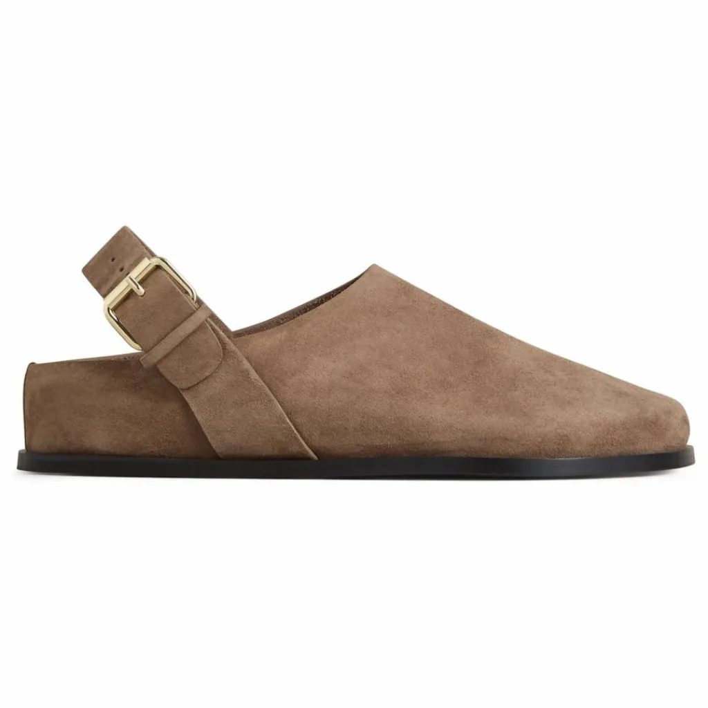 - Le sabot Louis est fabriqué en cuir souple, avec une bride arrière angulaire dotée d’une boucle dorée, sur une assise plantaire moulée et rembourrée.