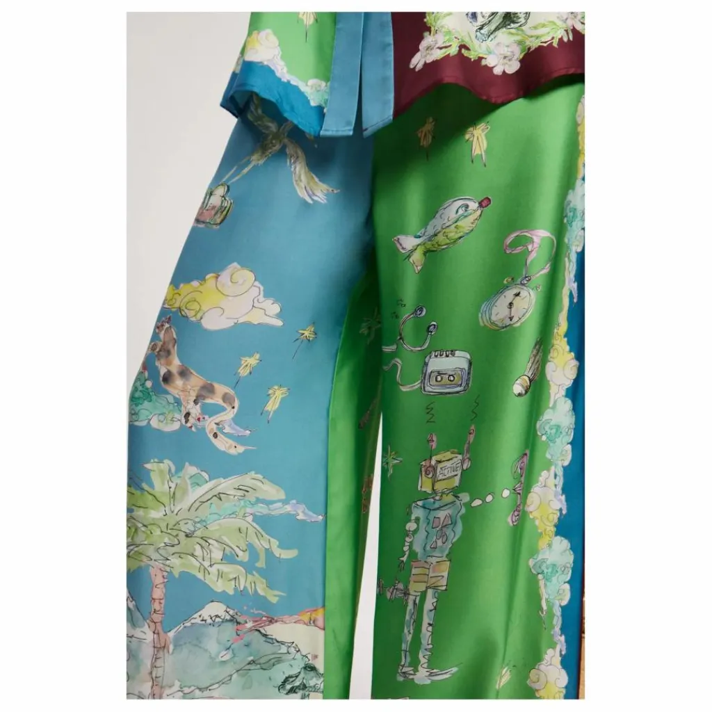 - Œuvre d’art en collaboration avec Anouk Colantoni Col et pied de col pointus Ourlet des manches retroussées avec pattes Patte de boutonnage dissimulée avec boutons recouverts Poches dans l’entrejambe