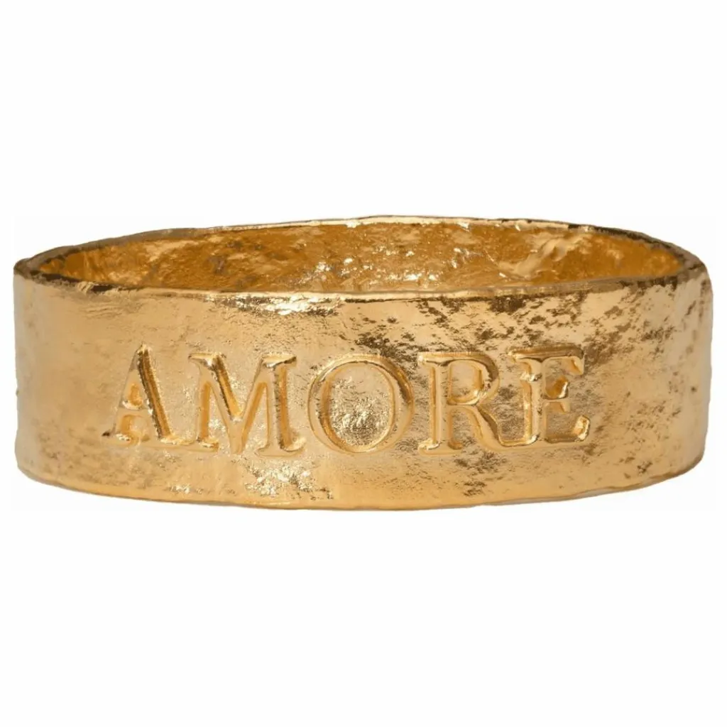 - Dans les cultures anciennes, les bracelets étaient des symboles de protection et de statut. Ils comportaient des motifs gravés qui faisaient allusion à l’histoire et au statut de la personne qui les portait. Le bracelet Amore est une pièce unique et robuste avec des lettres romaines qui épellent un message clair et important dans la vie : AMORE, amour en italien.