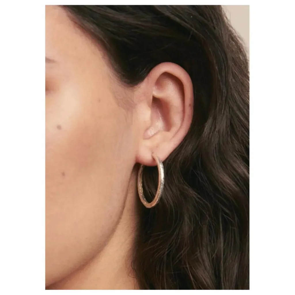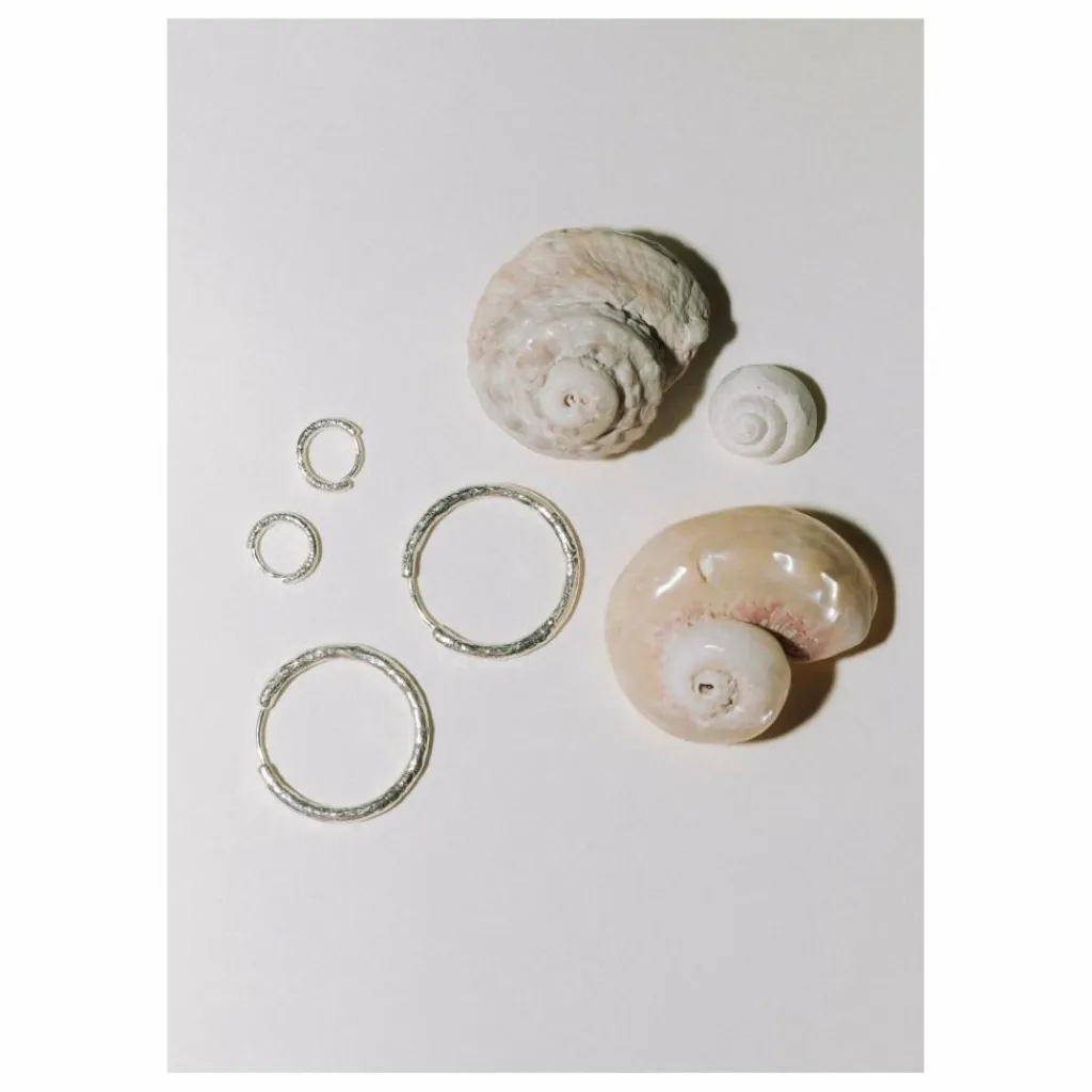 - Paire de cerceaux à la surface rugueuse, délicate et imparfaite, inspirée des cerceaux flamenco mais avec un poids approprié pour un usage quotidien. Ils ont l’équilibre parfait entre un simple anneau et un bijou spécial et unique. Entièrement en argent 925.