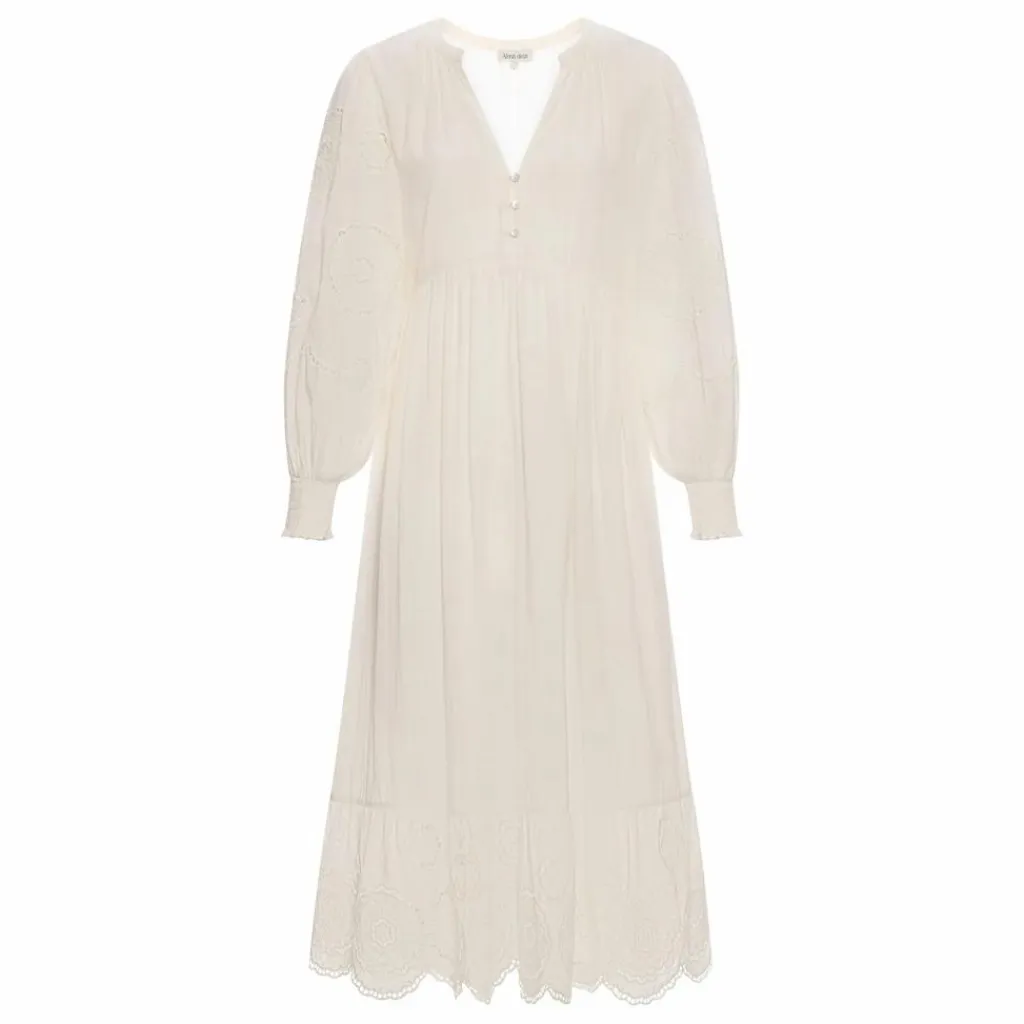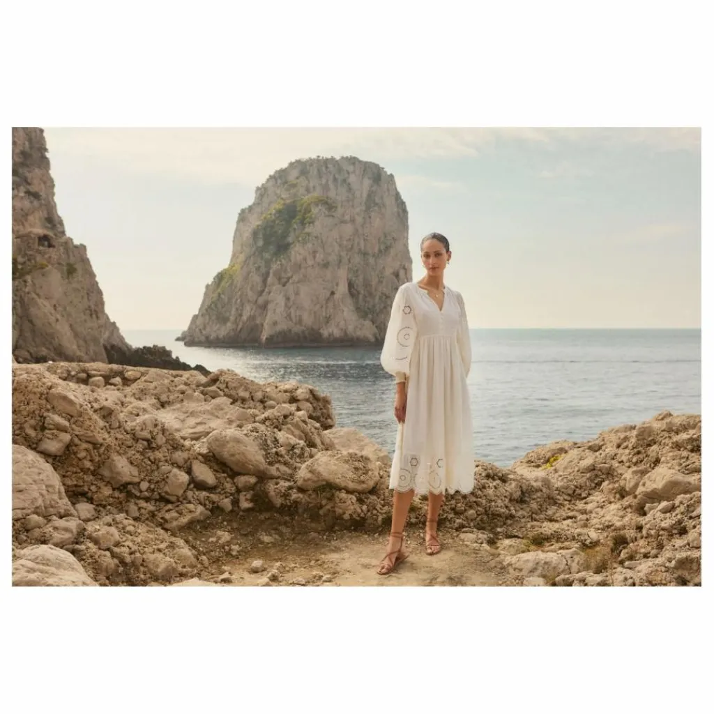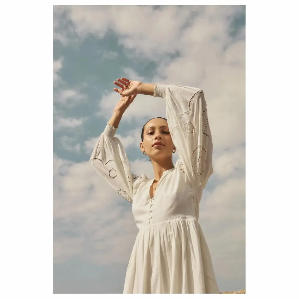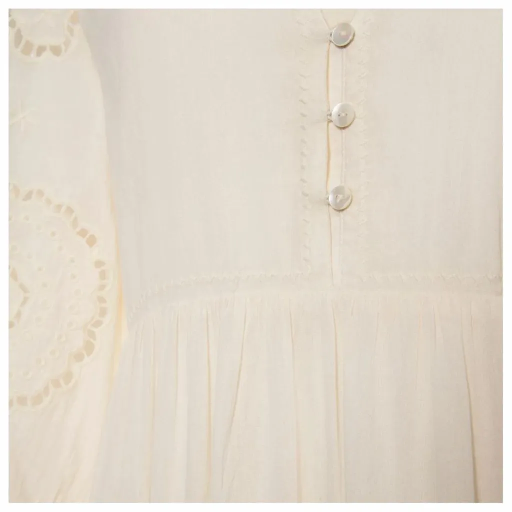 - Broderie anglaise, Manches longues bouffantes, Ajouré(s), Col mao