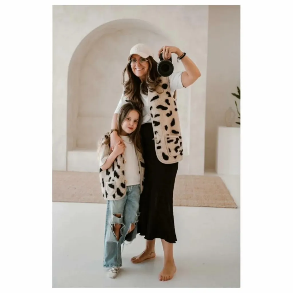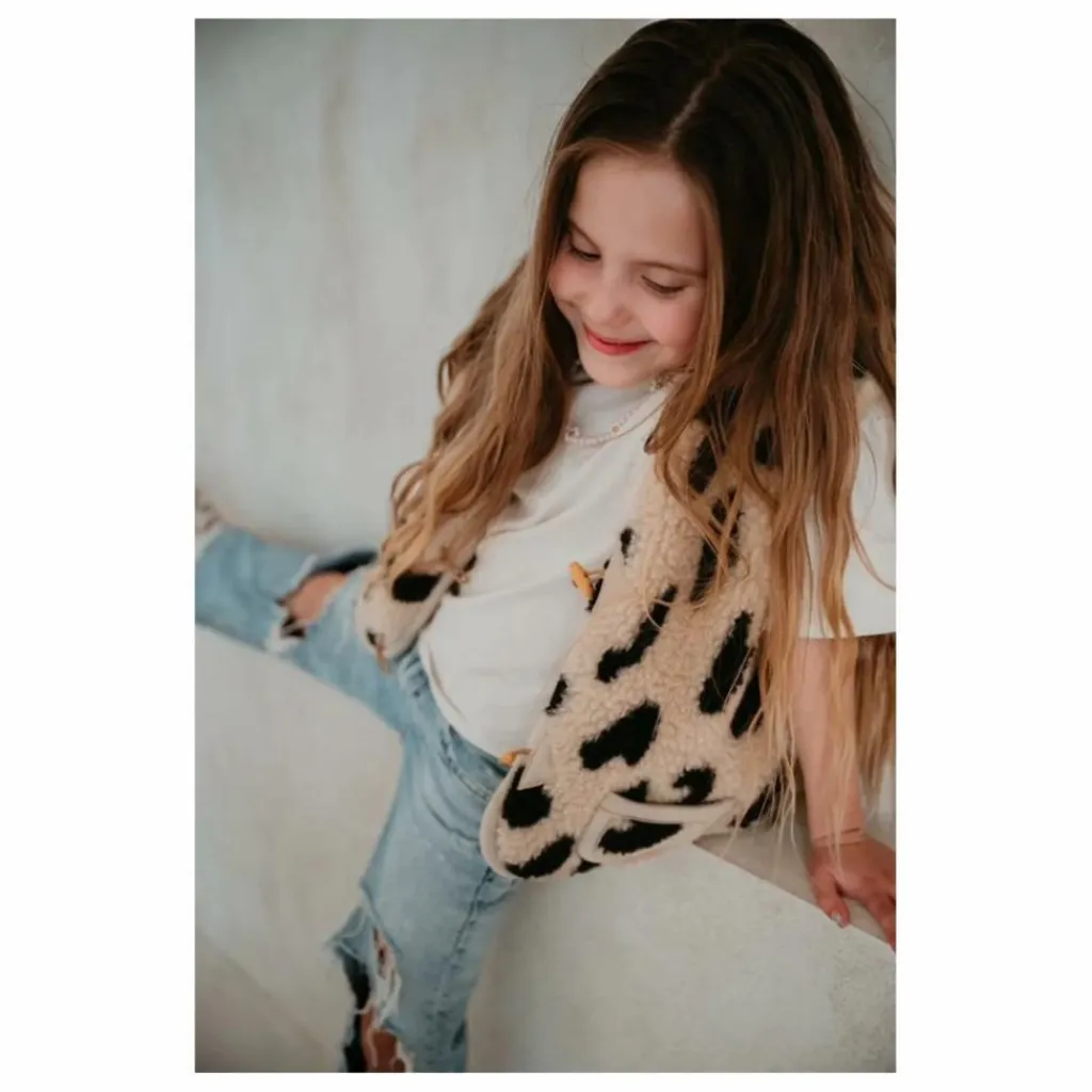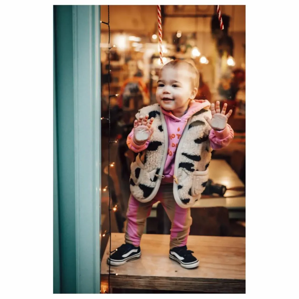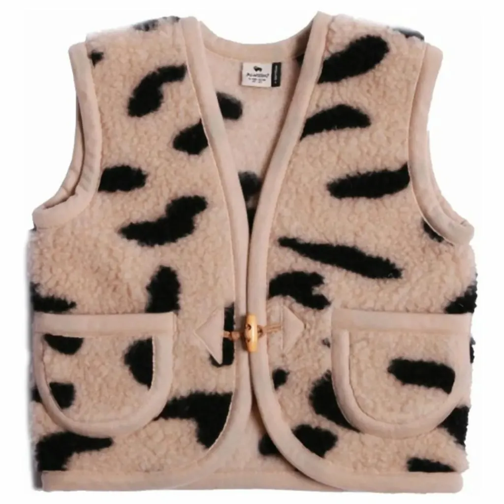 - Alwero bodywarmer Alpen Junior in a super cute cow print. A real must-have for kids. It is made of 100% wool, has a wooden string closure and is unlined, making it wonderfully comfortable to wear. Sizes 80-86 and 92-98 are supplied without pockets. Sizes 80-86 to 101-110 have 1 button, from size 116-122 it has 2 buttons. The small bodywarmers (80-86 to 104-110) are small, so order a size larger