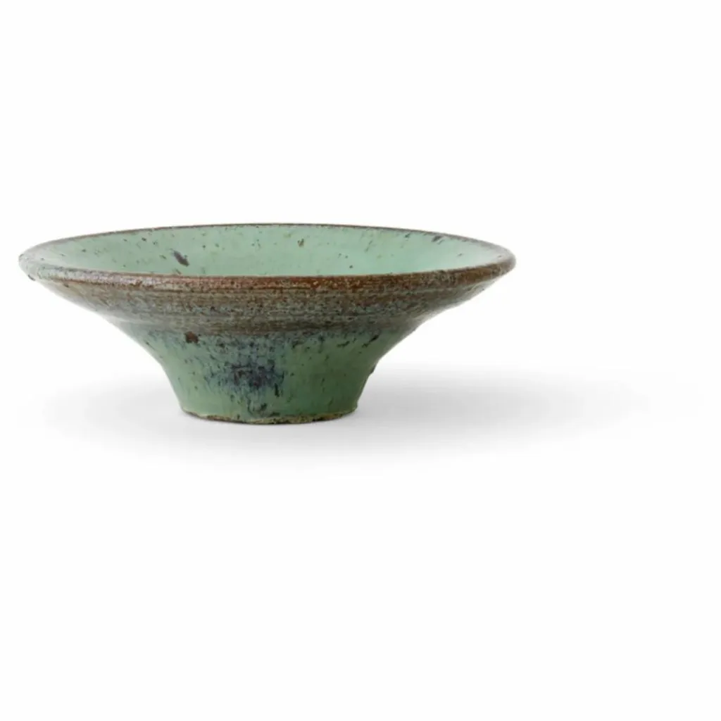 Fabriqué avec une glaçure réactive qui donne à chaque pièce une expression unique, le bol Tryptych en grès est parfaitement dimensionné pour contenir toutes sortes d’objets. S’effilant vers une base étroite, le design à large bord présente une surface décorative mouchetée, rappelant une trouvaille précieuse ou un objet de famille.