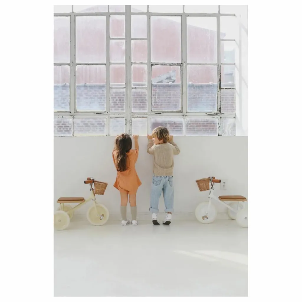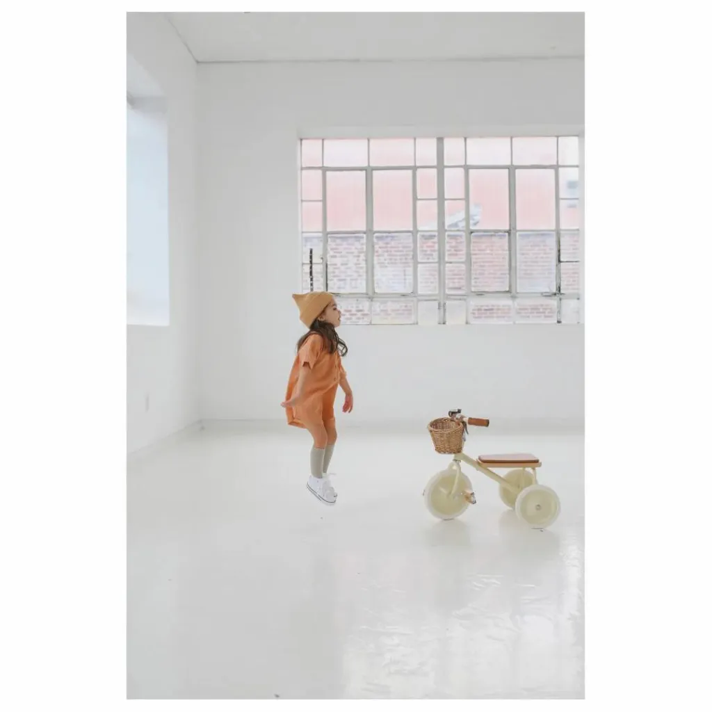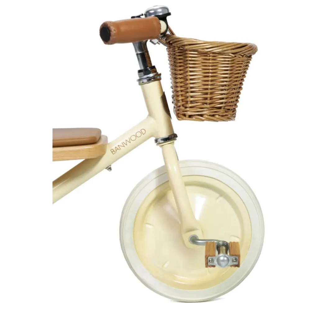 - Ce tricycle pour enfants est minimaliste et intemporel et convient parfaitement au plus jeune membre de la famille. Une aventure en plein air avec le plus petit sur un tricycle pour enfants vous attend ! Ce tricycle pour enfants convient à partir de 2 ans et est conçu pour durer des générations. Il est équipé d’un siège en chêne rembourré, de pédales en bois de chêne et de détails en cuir végétalien. Il est équipé d’un joli panier en osier à l’avant pour emporter l’essentiel au parc.