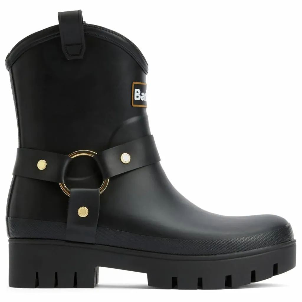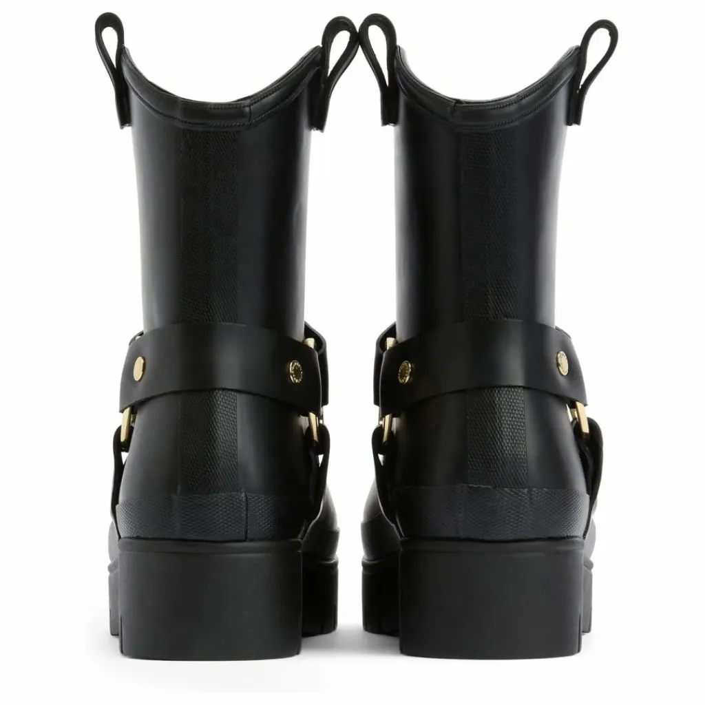 - Bottes de pluie en caoutchouc, mi-hautes. Détail boucle sur le coté, semelles à crampons et intérieur en Tartan.