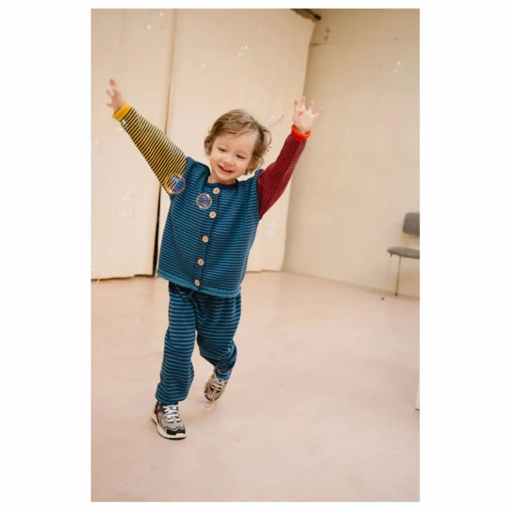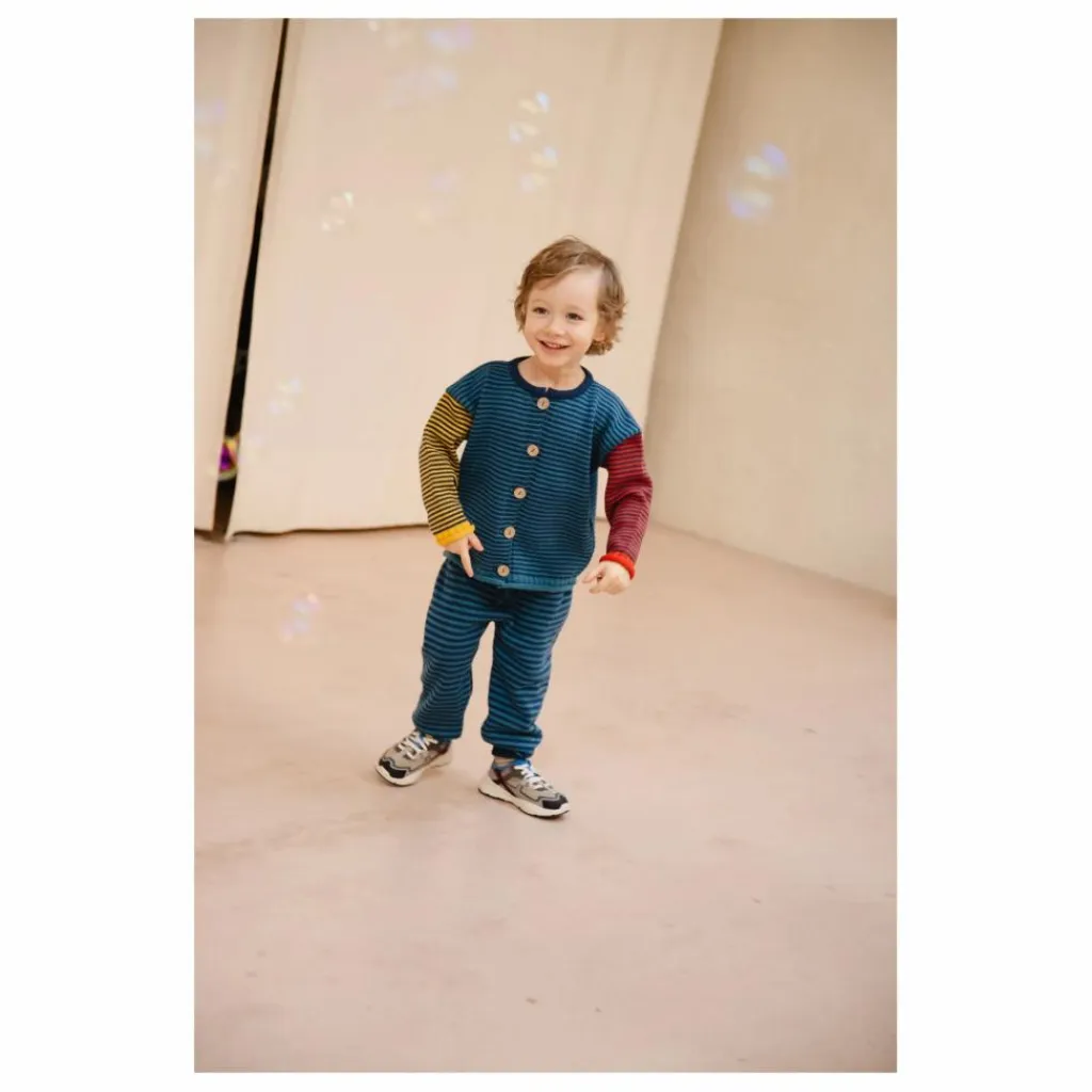 - Notre cardigan signature à rayures multicolores ! Une forme large, des épaules dégagées et de gros boutons en noix de coco 🙂