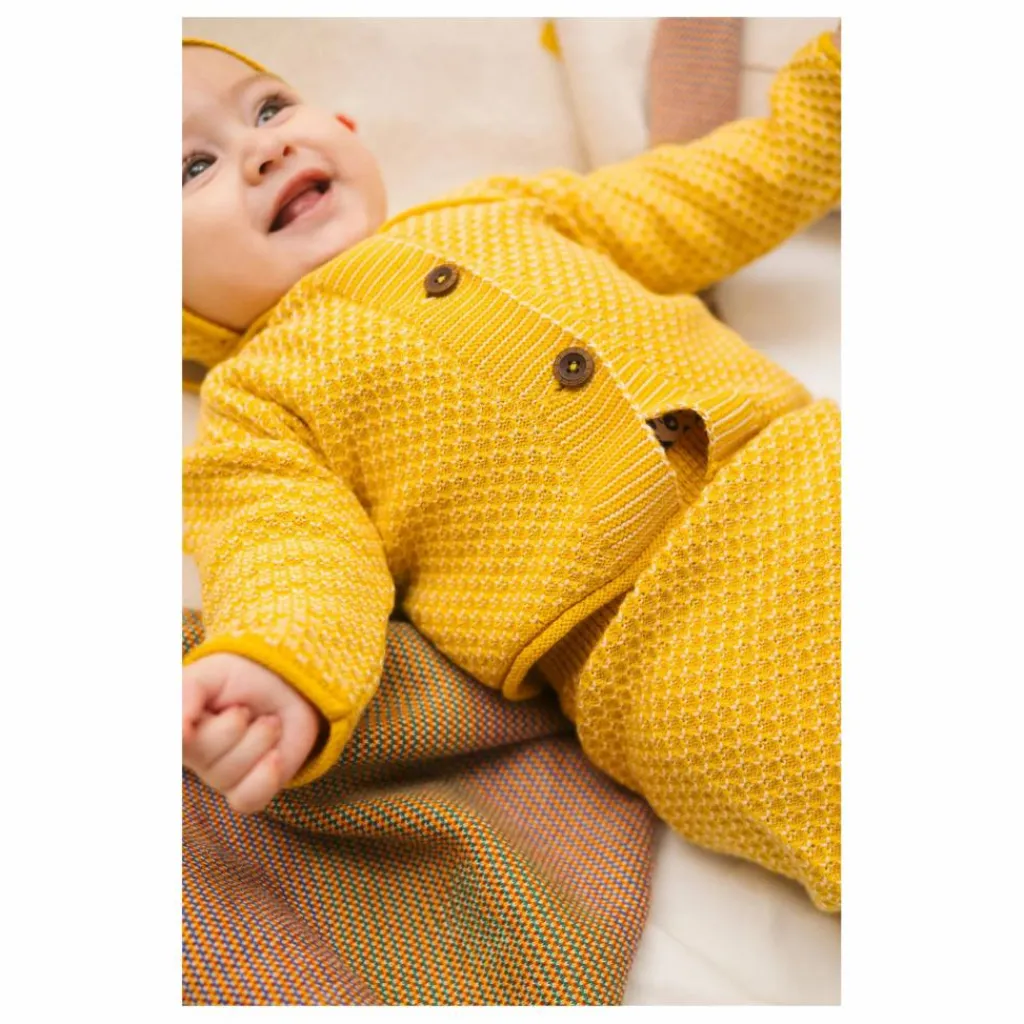 - Une veste tricotée classique avec un point de panier particulièrement délicat et de jolis boutons en noix de coco.