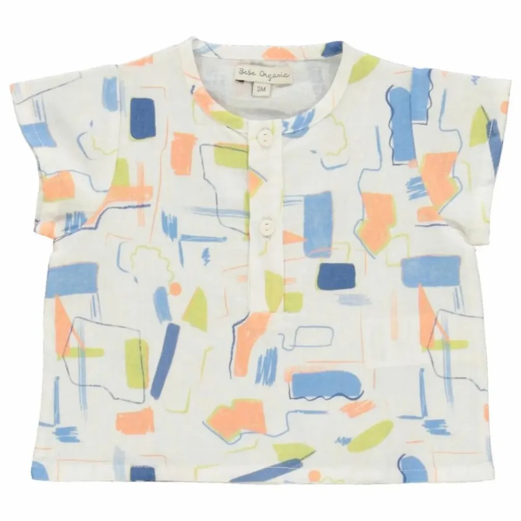 - Chemise Timo pour bébé à l’adorable imprimé abstrait. Cette chemise ample, facile et confortable, est dotée d’une ouverture à boutons sur le devant, d’un col rond et de manches courtes. Un must-have pour ce printemps/été. Parfaitement assortie au short Timo.