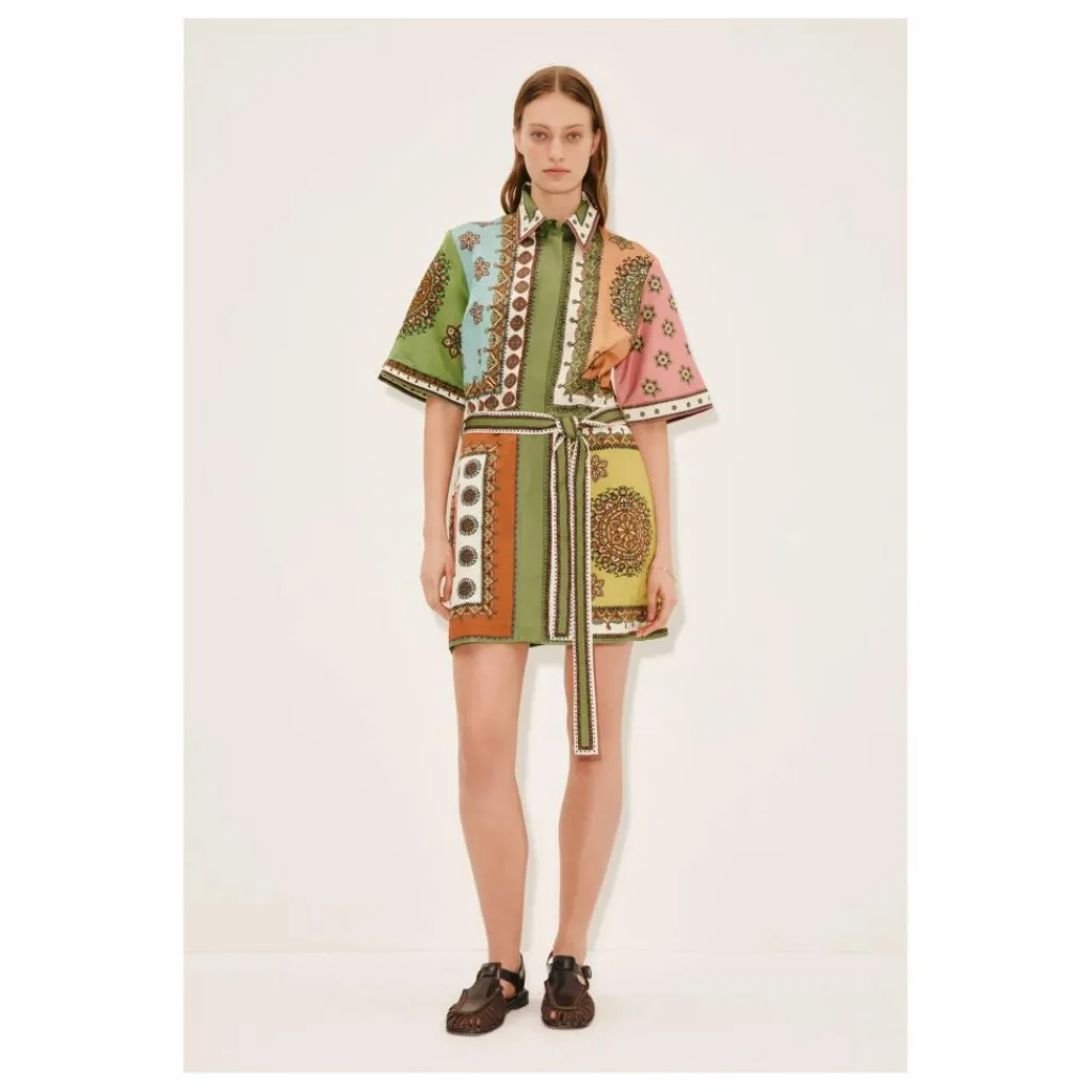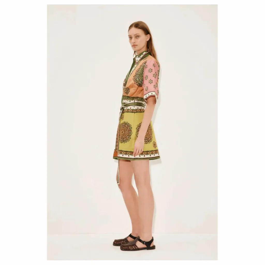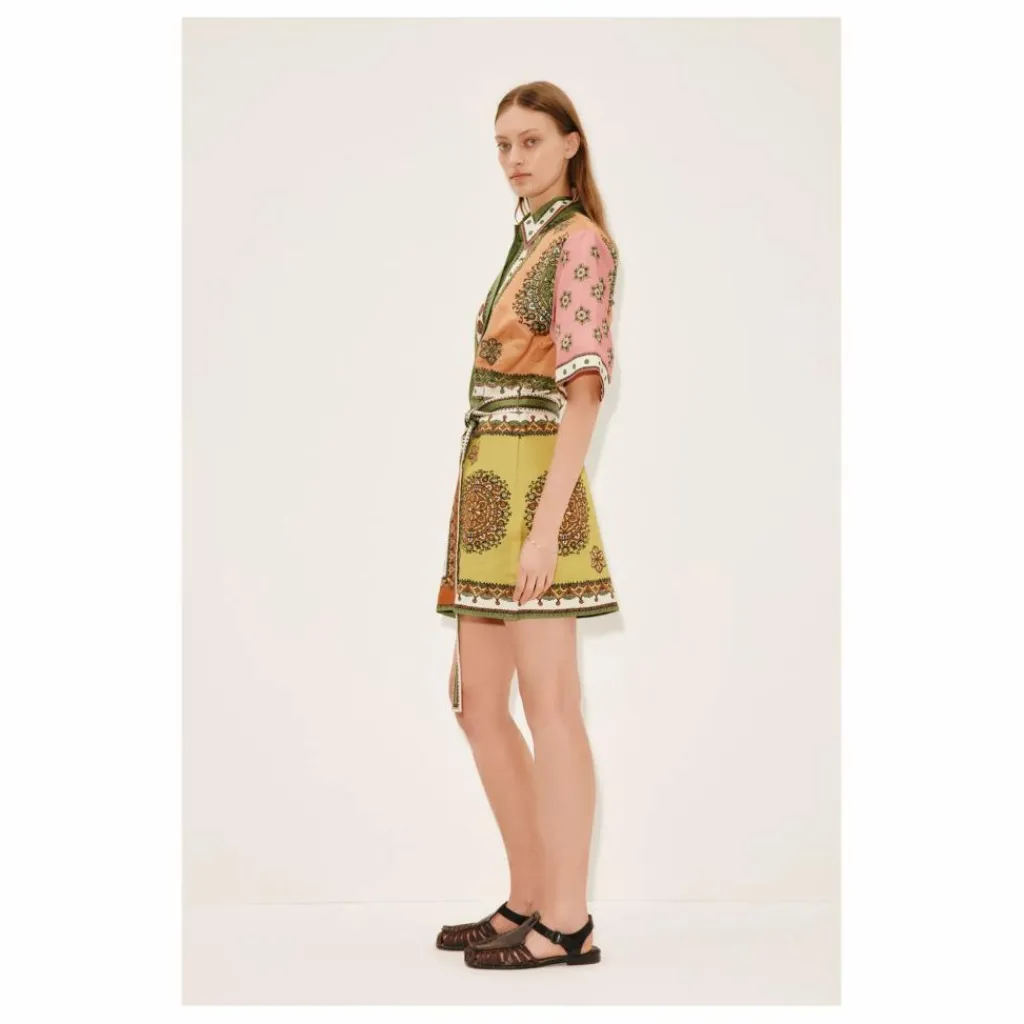 - – Silhouette droite de mini-robe-chemise – Col et pied en pointe – Manches courtes – Patte de boutonnage dissimulée avec boutons recouverts – Poches dans la couture – Ceinture à nouer – Se référer aux photos du produit à plat pour une représentation fidèle des couleurs du produit.