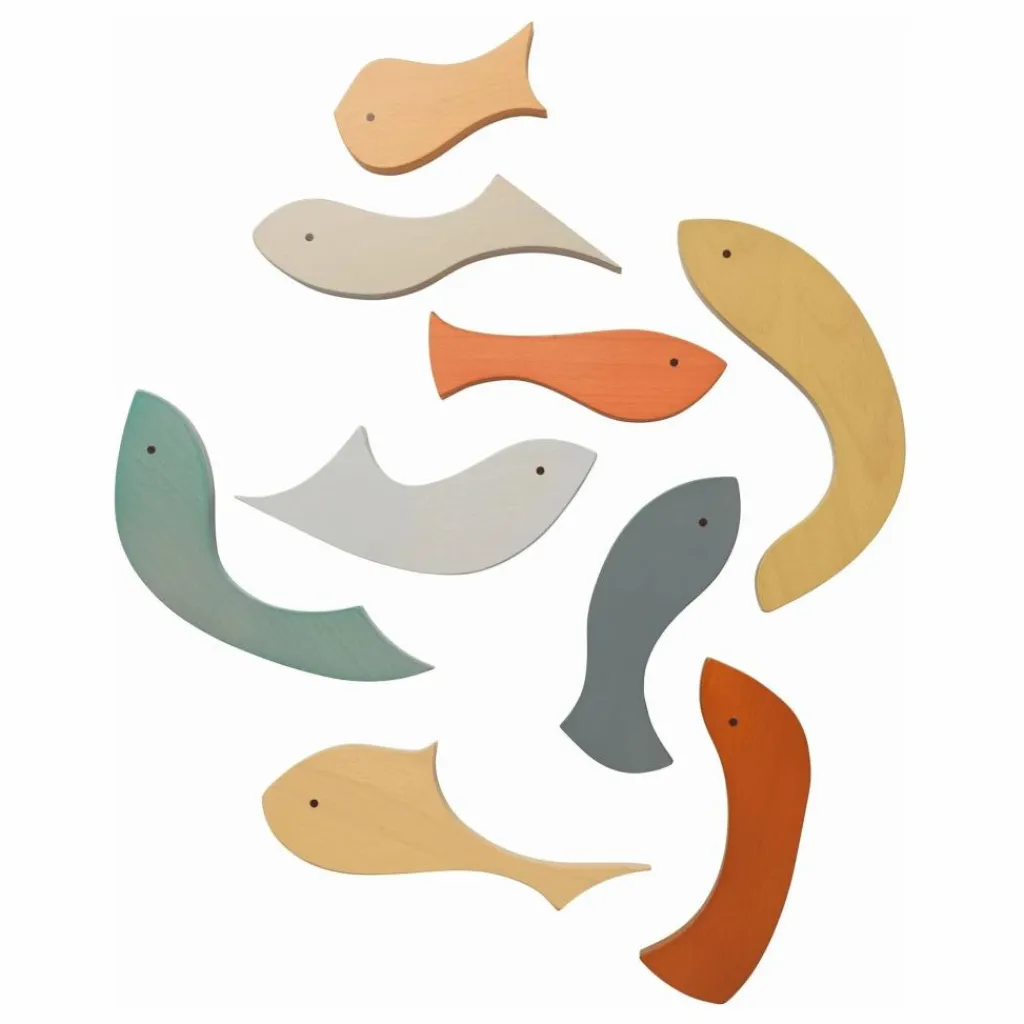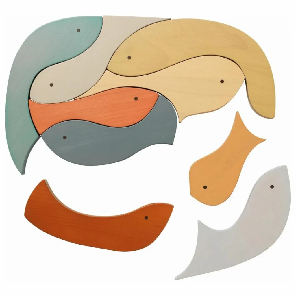 - Le Puzzle Shoal, fabriqué en bois de frêne certifié FSC®, s’inspire des formes fluides et entrelacées des bancs de poissons. Son design polyvalent vous invite à disposer, empiler ou mélanger les pièces, offrant ainsi des possibilités infinies d’exploration ludique et d’expression créative. Présenté dans une boîte-cadeau au design soigné, avec un contour imprimé, il allie magnifiquement art et fonctionnalité.