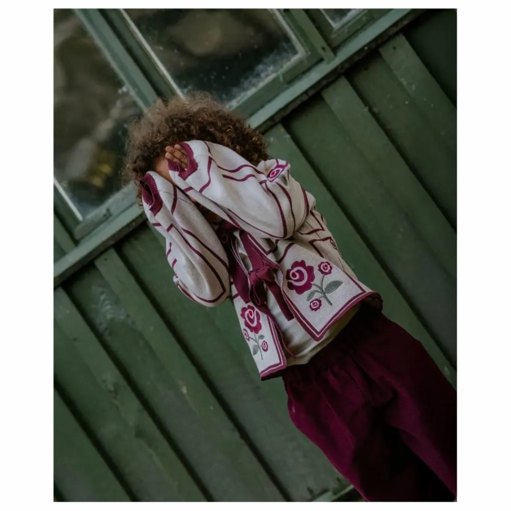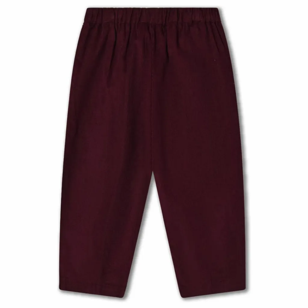 - Pantalon en coton doux et velours mélangés avec poches latérales et taille élastiquée.