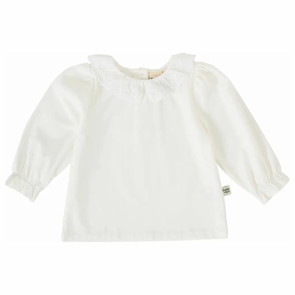 - Coloris blanc Broderie AnglaiseCollier Manches ballon avec poignets élastiques Conçu en Australie