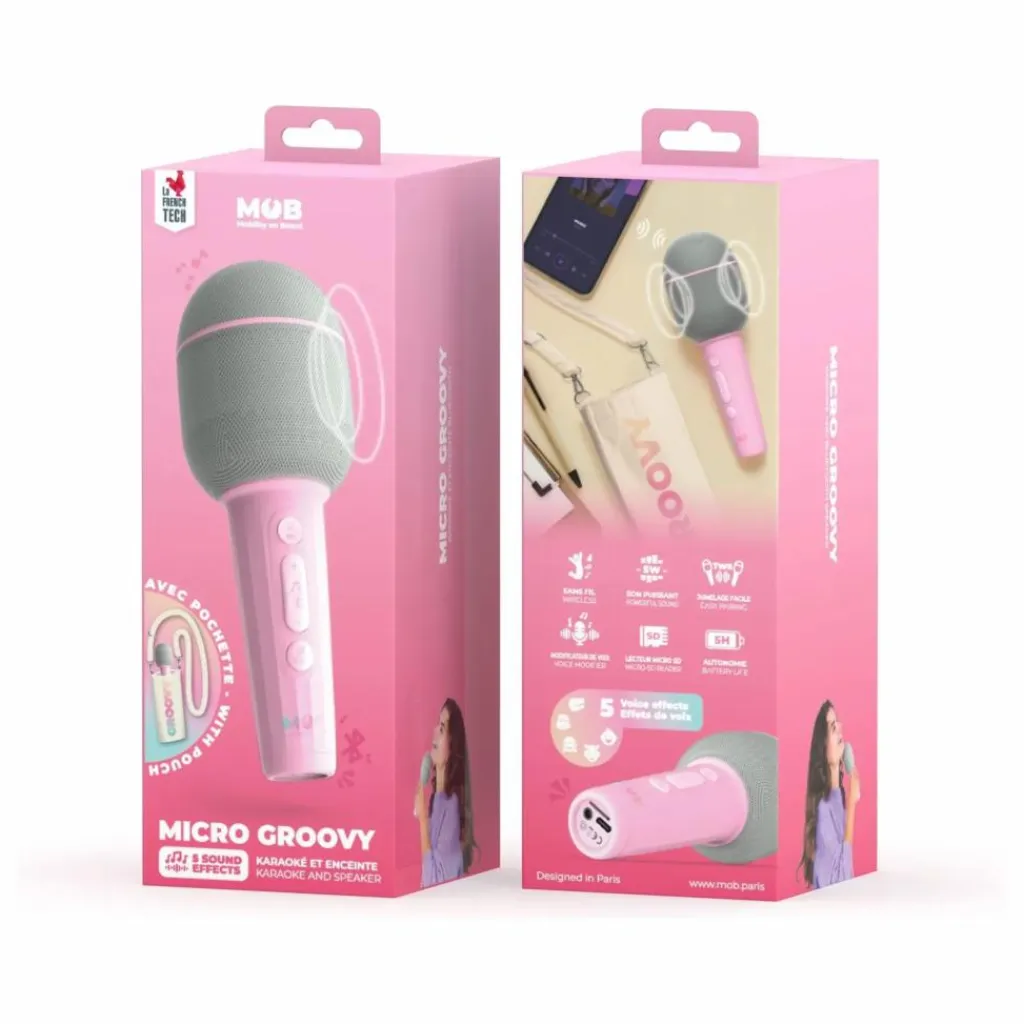 - Le Groovy Marshmallow : Ton Micro Karaoké Préféré ! Le Groovy Marshmallow est là pour transformer tes soirées karaoké en véritables spectacles ! Avec ce micro tout-en-un, prépare-toi à des heures de plaisir avec ses effets sonores amusants, ses changements de voix hilarants et sa connectivité Bluetooth. Les enfants et les plus grands vont adorer chanter et s’amuser sans fin. Le Groovy Marshmallow offre une expérience de divertissement inégalée pour toute la famille. Libère ta créativité et que le spectacle commence ! Libère Ta Voix, Libère Ta Créativité Avec le Groovy Marshmallow, les jeunes artistes peuvent explorer leur créativité en chantant et en s’amusant avec les effets sonores. Sans fil, pratique et facile à utiliser, le Groovy Marshmallow est parfait pour être emporté partout où l’aventure vous mène. Une Pochette Écologique pour un Transport Facile Pour rendre votre expérience encore plus pratique, le Groovy Marshmallow est livré avec une superbe pochette de transport en coton recyclé. Légère, durable et écologique, cette pochette peut être portée sur l’épaule, en bandoulière et adaptable sur tous. Elle vous permettra d’emporter votre micro karaoké préféré partout avec vous, que ce soit lors de sorties entre amis, de vacances en famille ou de fêtes en plein air. Fonctionnalités à Couper le Souffle Effets de Voix Amusants : Transforme ta voix avec 5 effets différents, passant des Chipmunks à Dark Vador, pour faire rire tes amis et ajouter une touche d’originalité à tes performances. Mode Duo Stéréo : Connecte deux Groovy ensemble grâce au mode TWS pour des duos karaoké sensationnels. Enceinte Bluetooth Intégrée : Écoute tes chansons préférées tout en chantant grâce à la connectivité Bluetooth 5.2 intégrée. Mode Karaoké Instantané : Appuie sur le bouton Karaoké et laisse ta voix briller en remplaçant celle de l’artiste. Caractéristiques Techniques : Modificateur de Voix avec 5 Effets Différents Enceinte Bluetooth 5.2 Intégrée de 5W Mode Spécial Karaoké Mode TWS pour Connecter Deux Micros et Chanter en Duo Prise Jack Autonomie de 5 Heures Lecteur de Carte SD Dimensions du Produit : 27x8x8 cm Avec le Groovy, chaque instant devient une véritable fête ! Que ce soit à la maison, en plein air ou lors de soirées entre amis, ce micro karaoké est l’accessoire parfait pour des moments de divertissement inoubliables.