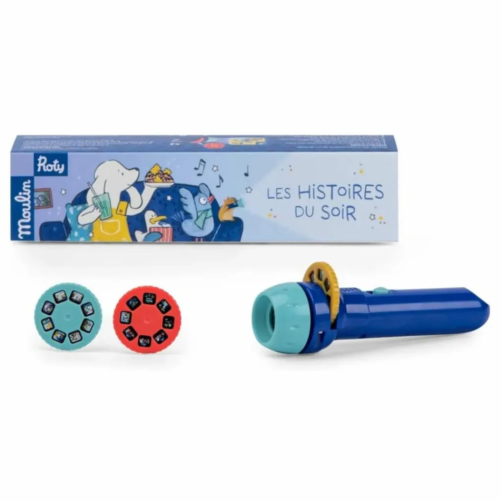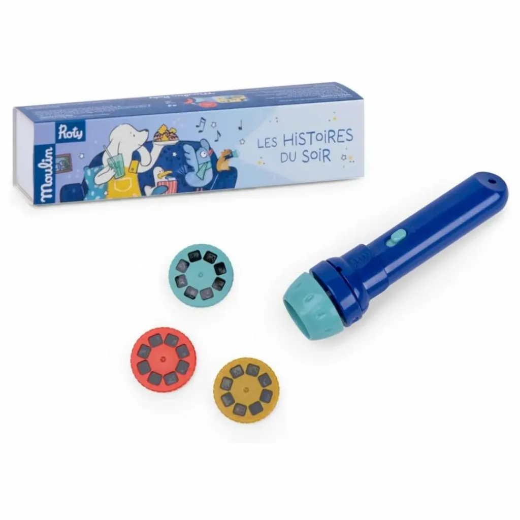 - Imaginer et raconter des histoires devient un jeu d’enfant avec la lampe torche de poche! Comprend une lampe à projeter et 3 disques pour imaginer de belles histoires avant de s’endormir le soir. On éteint la lumière pour que la magie opère et c’est parti…