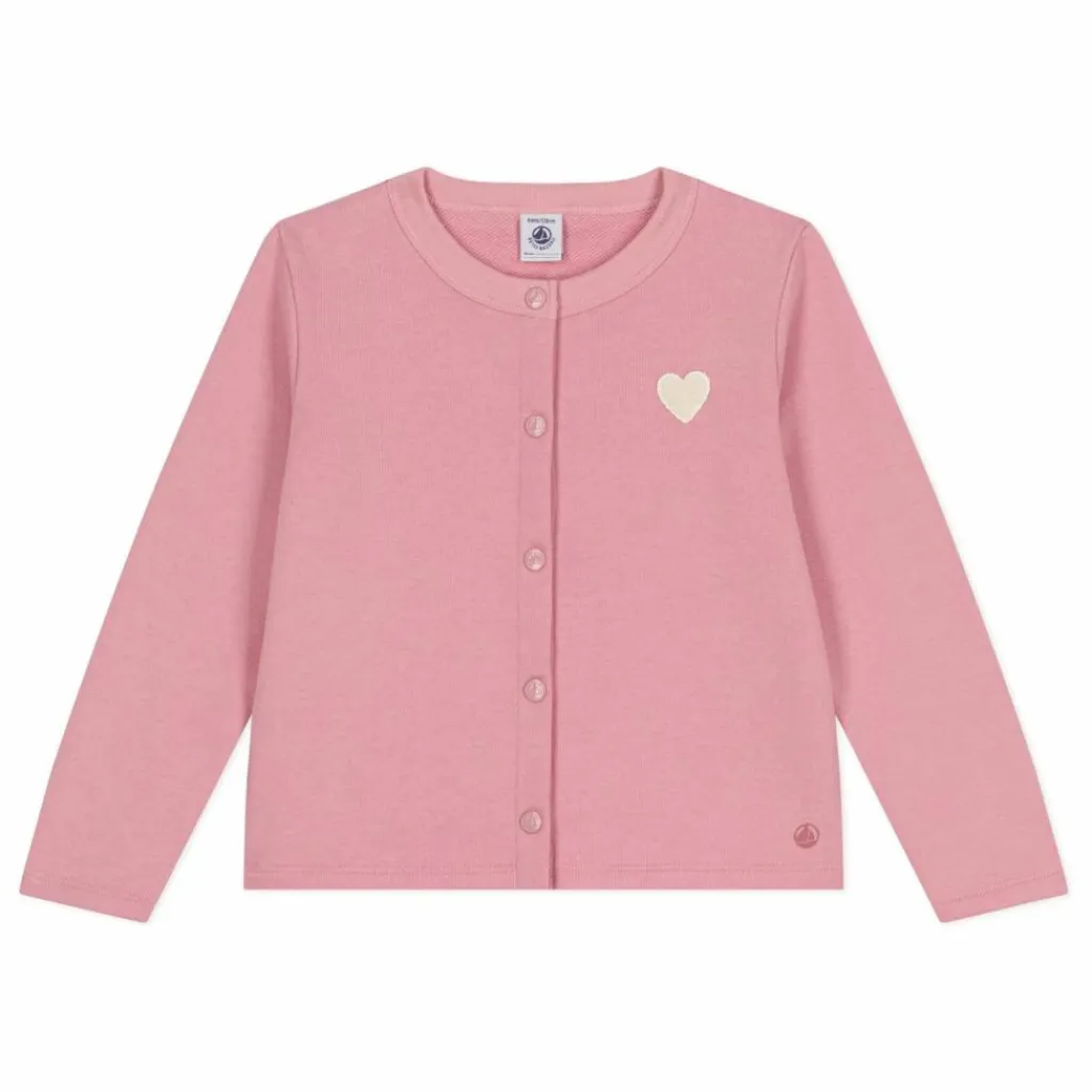 - Cardigan pour fille en molleton doux et confortable. Se ferme sur le devant par des boutons-pression estampillés. Encolure arrondie. Insigne en forme de coeur bouclé sur la poitrine.