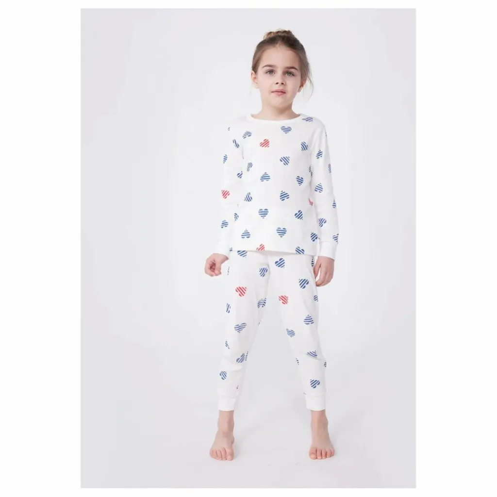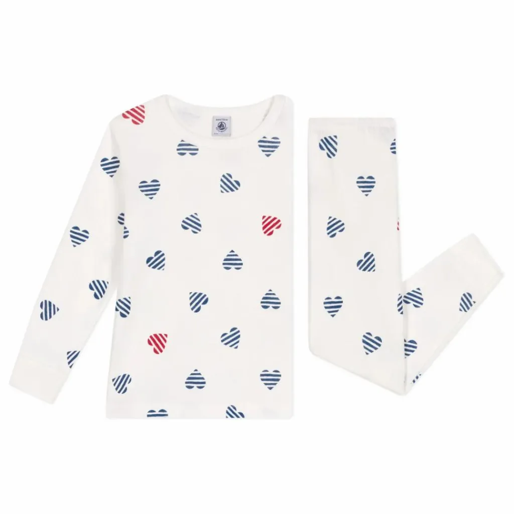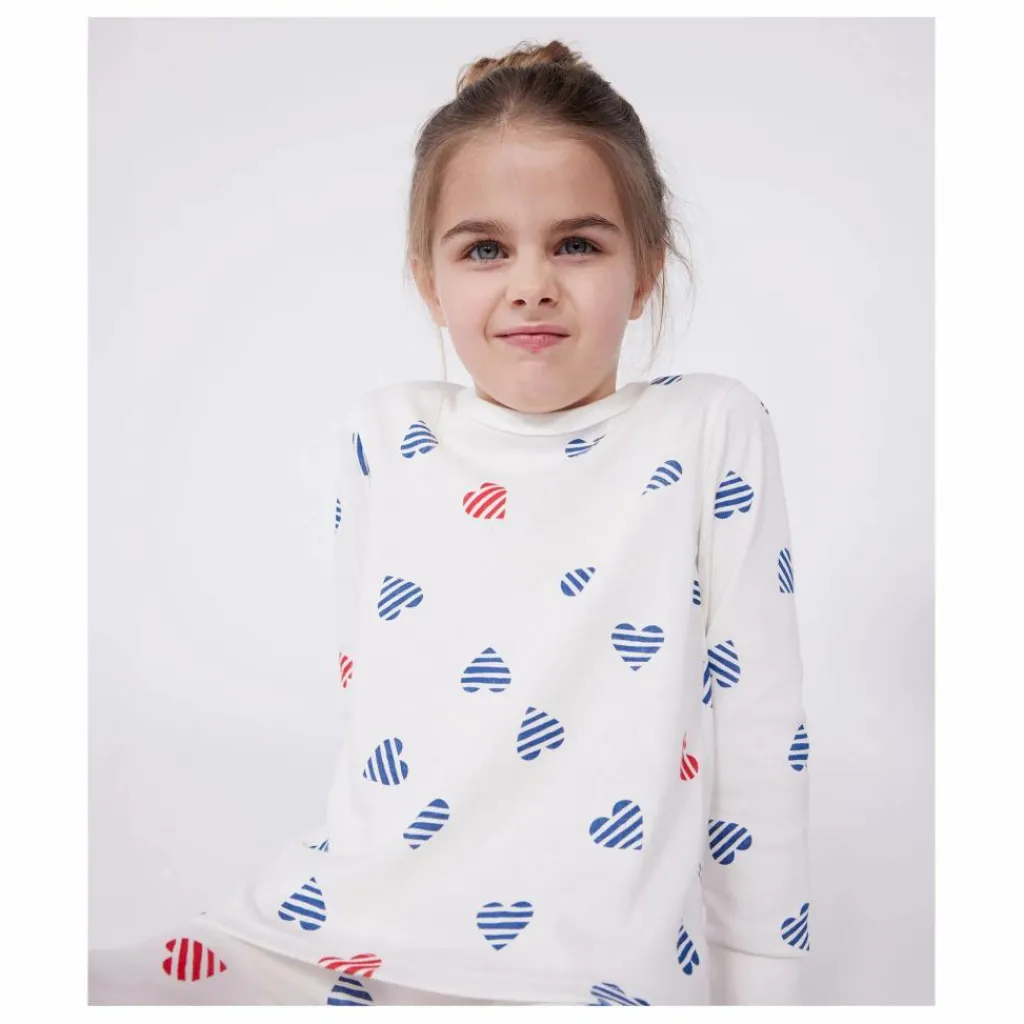 - Pyjama enfant à manches longues en coton imprimé cœur