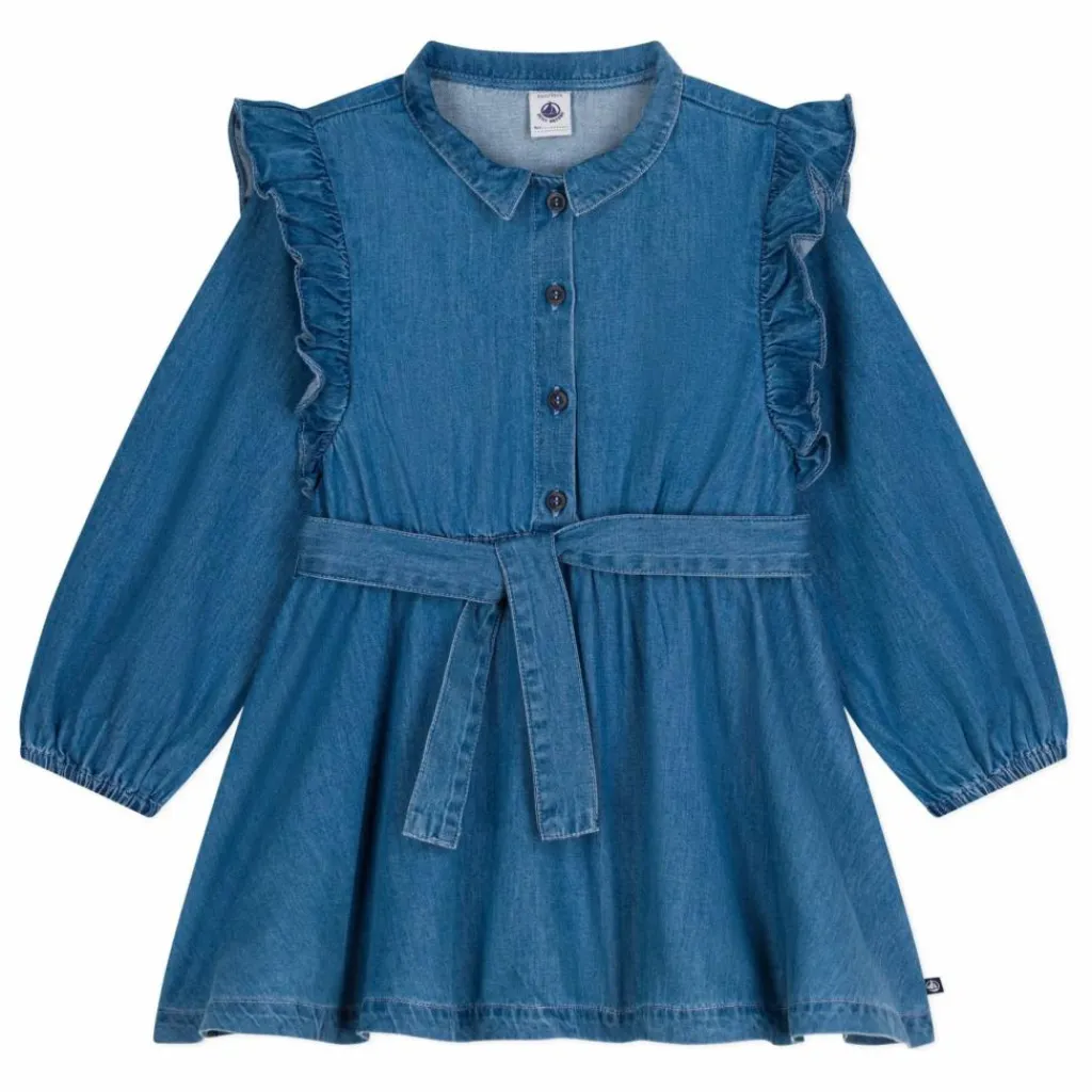 - Robe manches longues en denim léger, une matière agréable et souple.