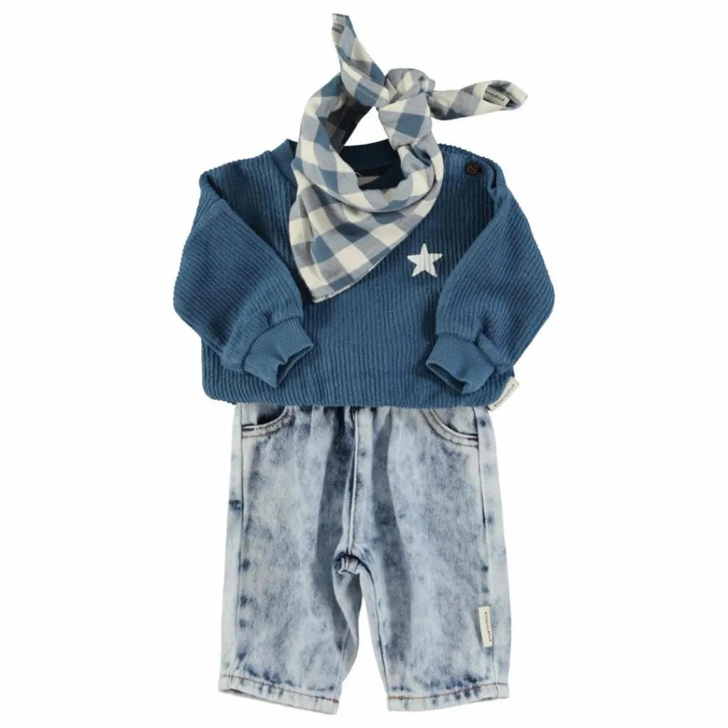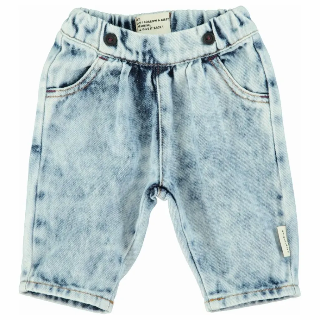 - Pantalon bébé avec poches latérales. Taille élastiquée avec petits boutons noirs à l’avant.