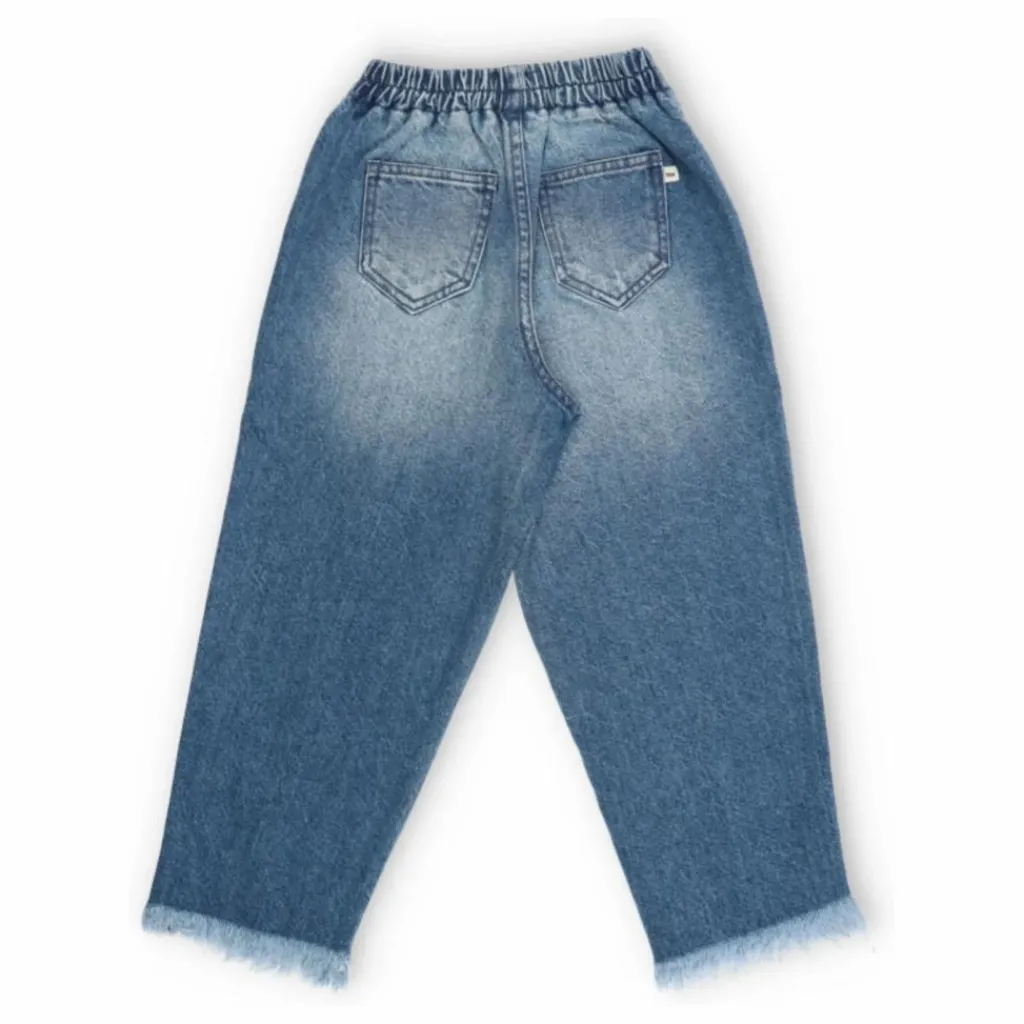 - Voici notre pantalon en denim Seattle avec une coupe plus large, cinq poches et une ceinture élastique à l’arrière. Les découpes sur les jambes en font une pièce unique et distincte.