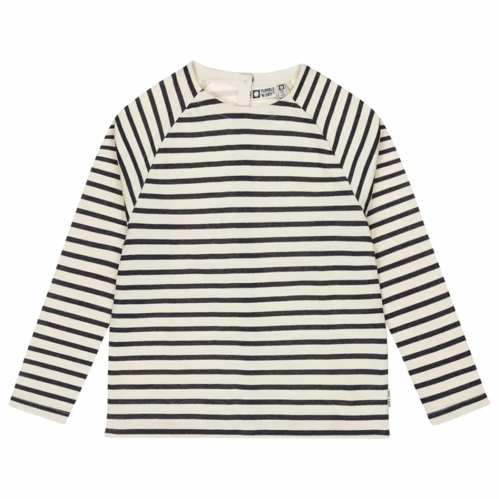 - Tshirt à manches raglan, rayures sur tout le corps avec du lurex et boutons au dos