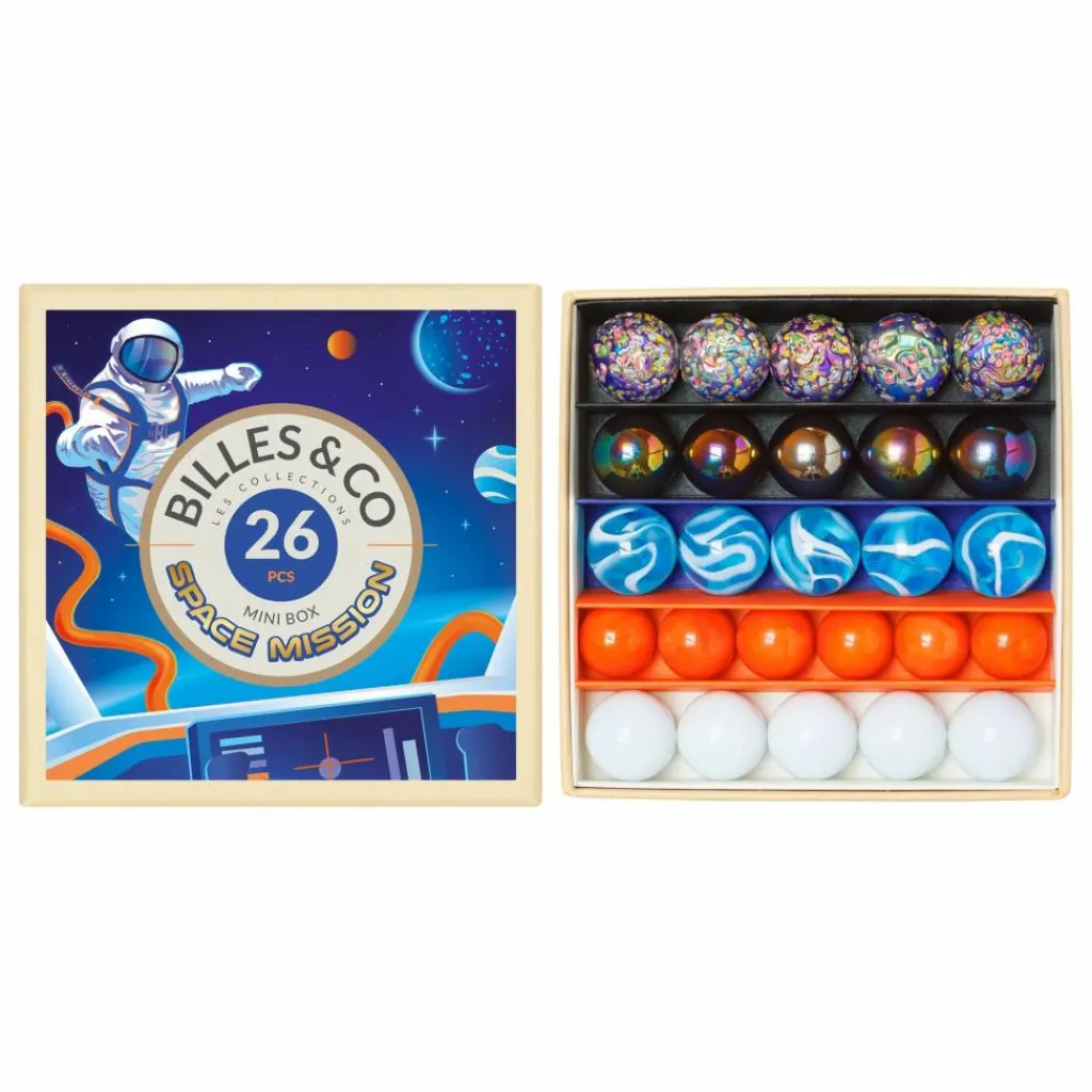 Les boîtes Billes & Co sont de véritables boîtes aux trésors. Les billes sont sélectionnées puis rangées à la main. Elles aideront au développement de votre enfant : acquérir un vocabulaire esthétique, ranger pour structurer la pensée, exercer la motricité…