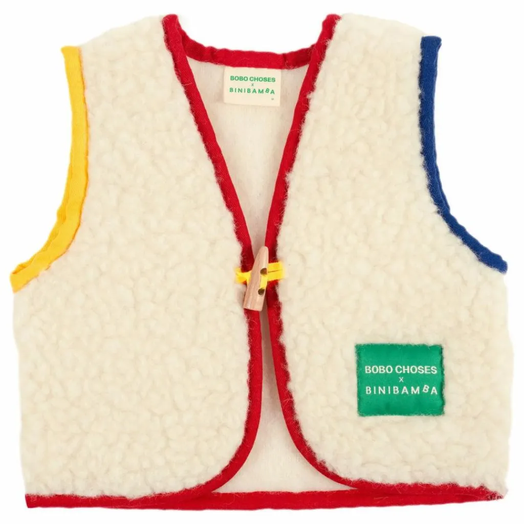 - ÉDITION LIMITÉE ! Bobo Choses & BINIBAMBA bouleversent le jeu des câlins avec une collection produite de manière responsable et durable. Que porter aujourd’hui ? Bini a la réponse. Notre objectif est d’être douillet, quel que soit le temps. Fabriqué à la main avec amour à partir de notre peluche en pure laine mérinos, avec une fermeture à genou en bois naturel, notre Snugglevest est naturellement hypoallergénique, antibactérien et très élégant. Votre super-héros de la superposition… abandonnez ce manteau et superposez-le à des vêtements en coton par temps chaud ou à des tricots et des sweats en hiver. Ce doudou régulateur de température permettra à votre Binibabe de se sentir à l’aise quel que soit le temps. Présenté dans notre sac à poussière 100% coton BOBO CHOSES X BINIBAMBA, il est prêt à être offert. Nous voulons. Réutilisez-le comme sac à langer, sac à jouets, sac à vie et sac de voyage ! Composition : 100 % laine mérinos, reliure 100 % coton. Couleur : LAIT + bordure contrastée multicolore LOVE ME Tout comme vous ne jetteriez pas votre pull en laine préféré au lavage, traitez votre BINI avec amour pour qu’il reste au meilleur de sa forme. La laine est naturellement antibactérienne et résistante aux taches grâce à la lanoline naturellement présente dans ses fibres. Épongez les taches légères à l’aide d’un chiffon humide et réduisez le lavage au minimum. Pour les taches plus tenaces, lavez le vêtement à la main avec un détergent pour laine, remodelez-le pendant qu’il est humide et laissez-le sécher à l’abri de la chaleur directe. La laine sera légèrement plus rigide après le lavage, mais s’assouplira rapidement à l’usage. Ne jamais laver en machine, sécher au sèche-linge ou repasser. La laine est une matière naturelle. De légères variations dans la couleur et la texture de nos modèles en laine sont possibles et font partie du caractère naturel de nos produits – ce qui rend chaque BINIBAMBA unique.