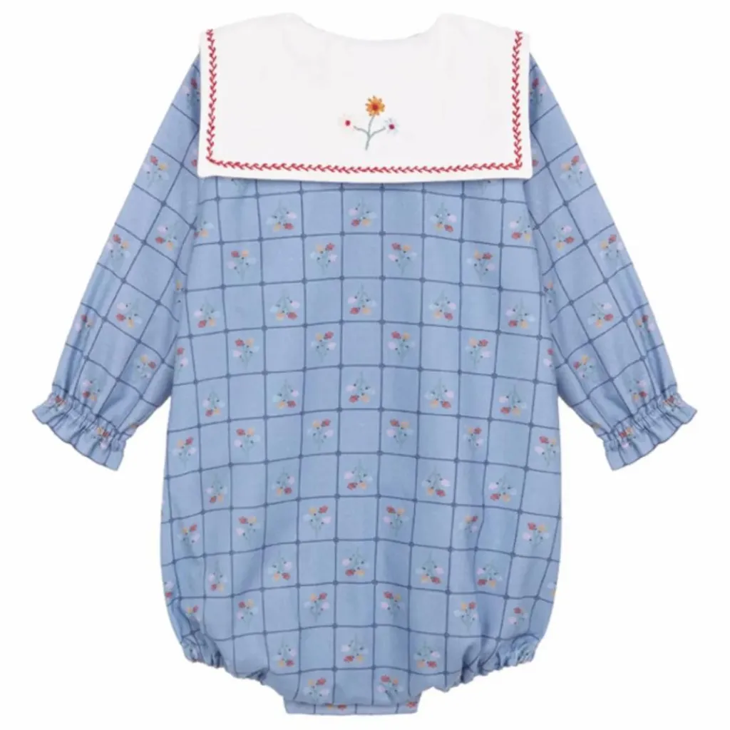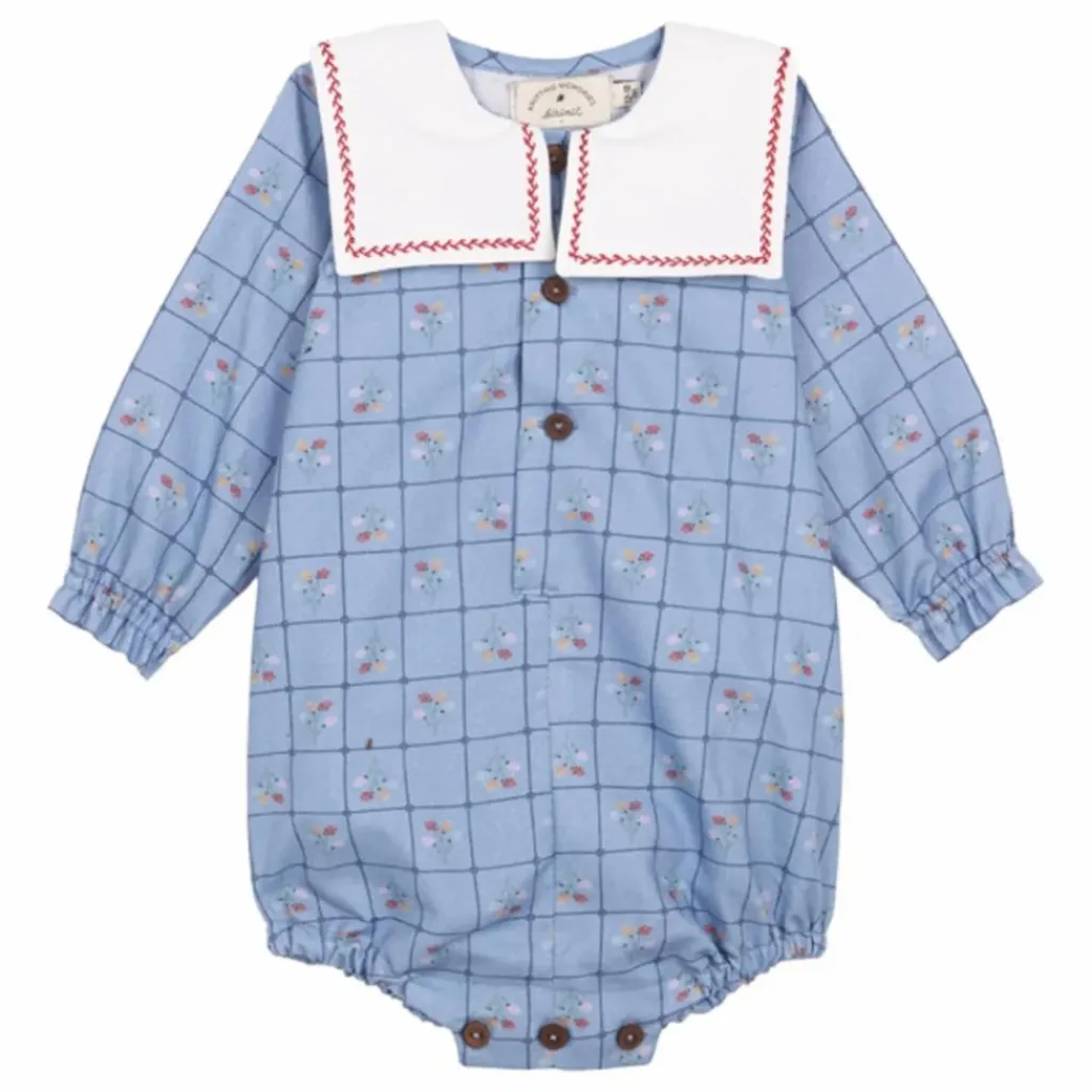 - Redingote imprimée en gots 100% coton biologique avec col marin brodé à la main. Boutonnage devant et en bas.