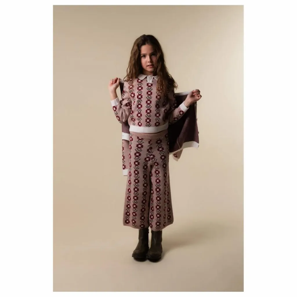 - Veste tricotée en jaquard floral avec encolure, poignets et ourlet contrastés.
