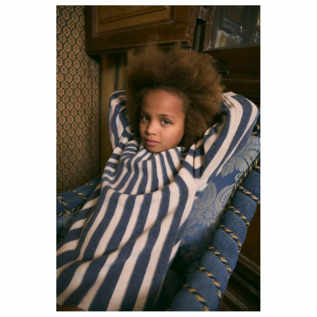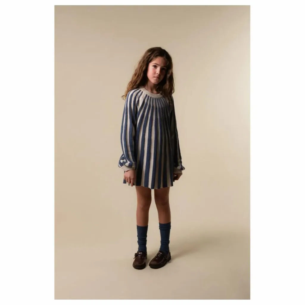 - Robe en tricot à rayures verticales avec encolure et poignets côtelés.