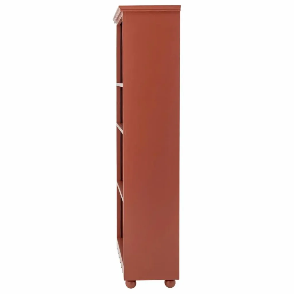 - L’Armoire Sasha de Bloomingville est fabriquée en MDF peint en rouge, avec un bord inférieur ondulé et de petits pieds ronds. Les détails légèrement arrondis et le choix des couleurs confèrent à l’armoire une touche ludique et décorative.