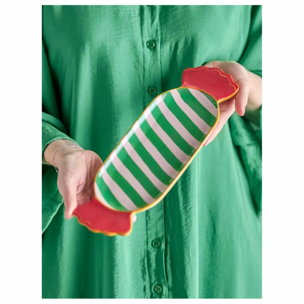 L’assiette de service Caramella de Bloomingville est en forme de caramel et décoré de détails peints à la main qui rendent chaque pièce unique. Les couleurs vives et le design accrocheur apportent une touche ludique et colorée aussi bien aux repas quotidiens qu’aux repas festifs.