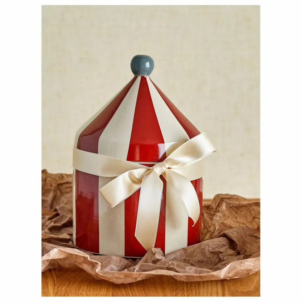 - La cruche Cimmi avec couvercle de Bloomingville MINI est une solution de rangement confortable qui apporte jeu et imagination dans tout espace enfantin. Cette jolie cruche est façonnée comme un chapiteau de cirque et fabriquée en grès avec un motif à rayures rouges et blanches. Elle est parfaite pour cacher de petits trésors, des bonbons aux petits jouets, et sert également d’élément décoratif dans la chambre des enfants ou dans la cuisine.