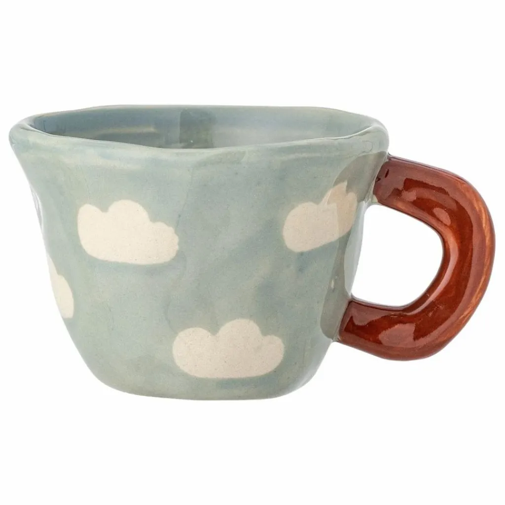- La Tasse Nini de Bloomingville MINI est en grès, ce qui la rend parfaite pour servir du chocolat chaud aux petits ou un espresso aux adultes. La tasse est décorée de belles couleurs, et les nuages créent une ambiance rêveuse et féerique qui fait sourire, même les jours de pluie.