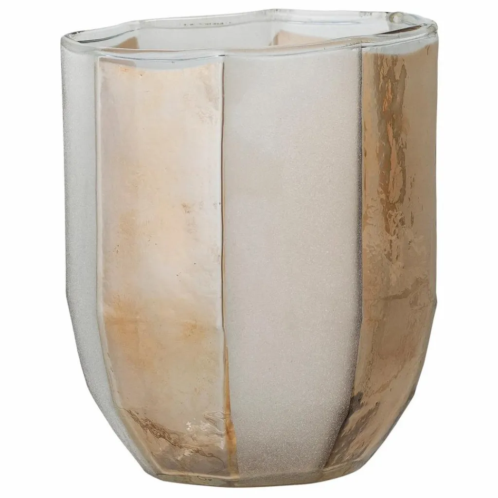 Associant à merveille verre blanc mat et verre doré, le photophore Jalil est idéal pour créer une atmosphère apaisante dans votre maison.