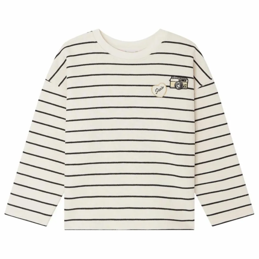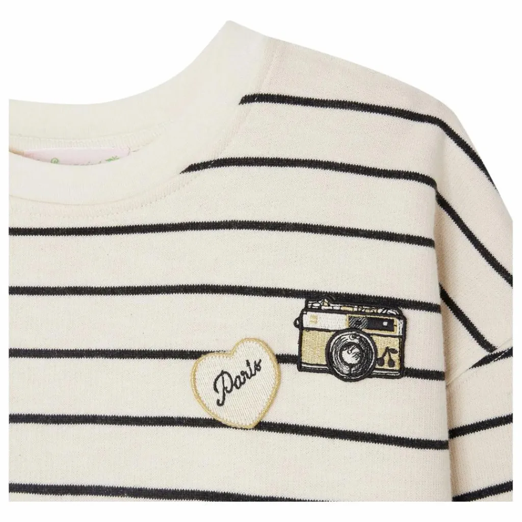 - Ce sweat-shirt Gaya séduit les filles avec ses patchs cœur et appareil photo sur la poitrine. Ses emmanchures basses et sa confection en molleton doux contribuent à son confort.Coton majoritaireMotif rayures esprit marinièreÉtiquette Bonpoint au dos