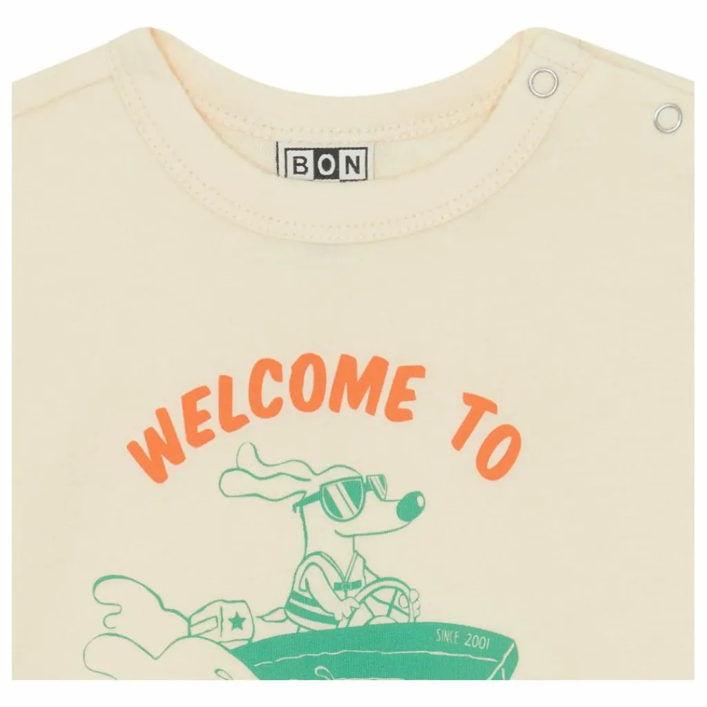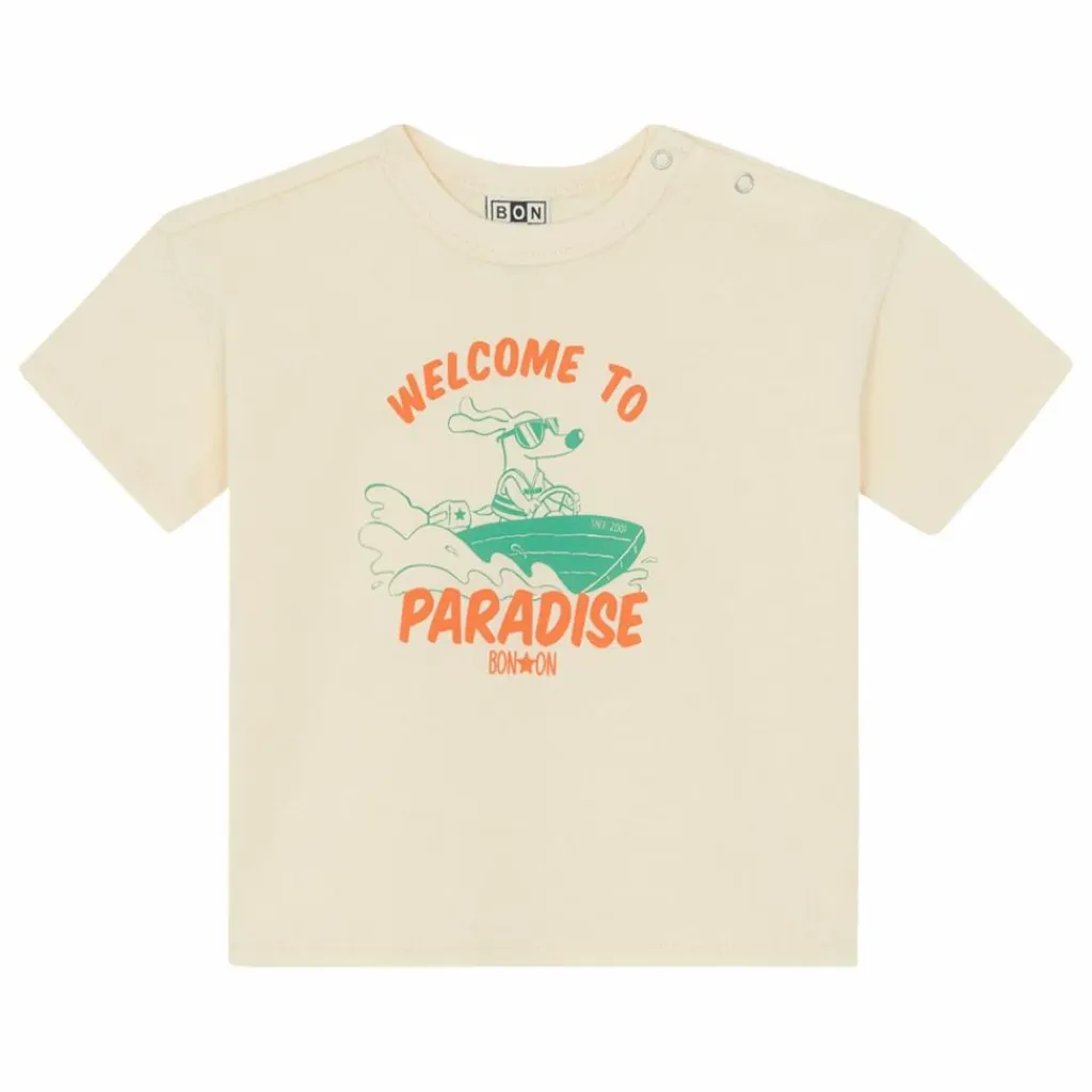 - Découvrez le t-shirt Livo en vanilla, une invitation au paradis pour les tout-petits avec son illustration « Welcome to paradise » ! Doté de ses deux boutons pression sur l’épaule, il est à la fois pratique et stylé, parfait pour les journées de découverte. Fait en coton doux, il garantit confort et liberté de mouvement, tout en ajoutant une touche de fraîcheur tropicale au vestiaire de bébé.