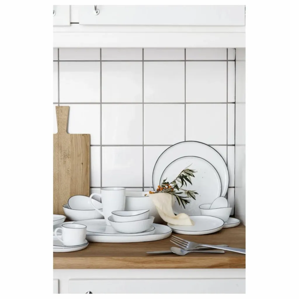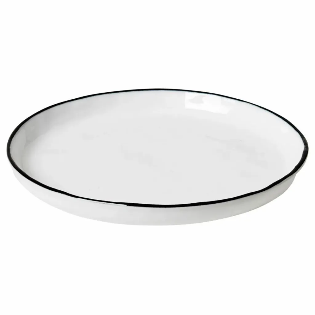 Cette assiette Salt en grès émaillé apportera une petite note minimaliste à votre quotidien. La jolie bordure à délicatement été peinte à la main.