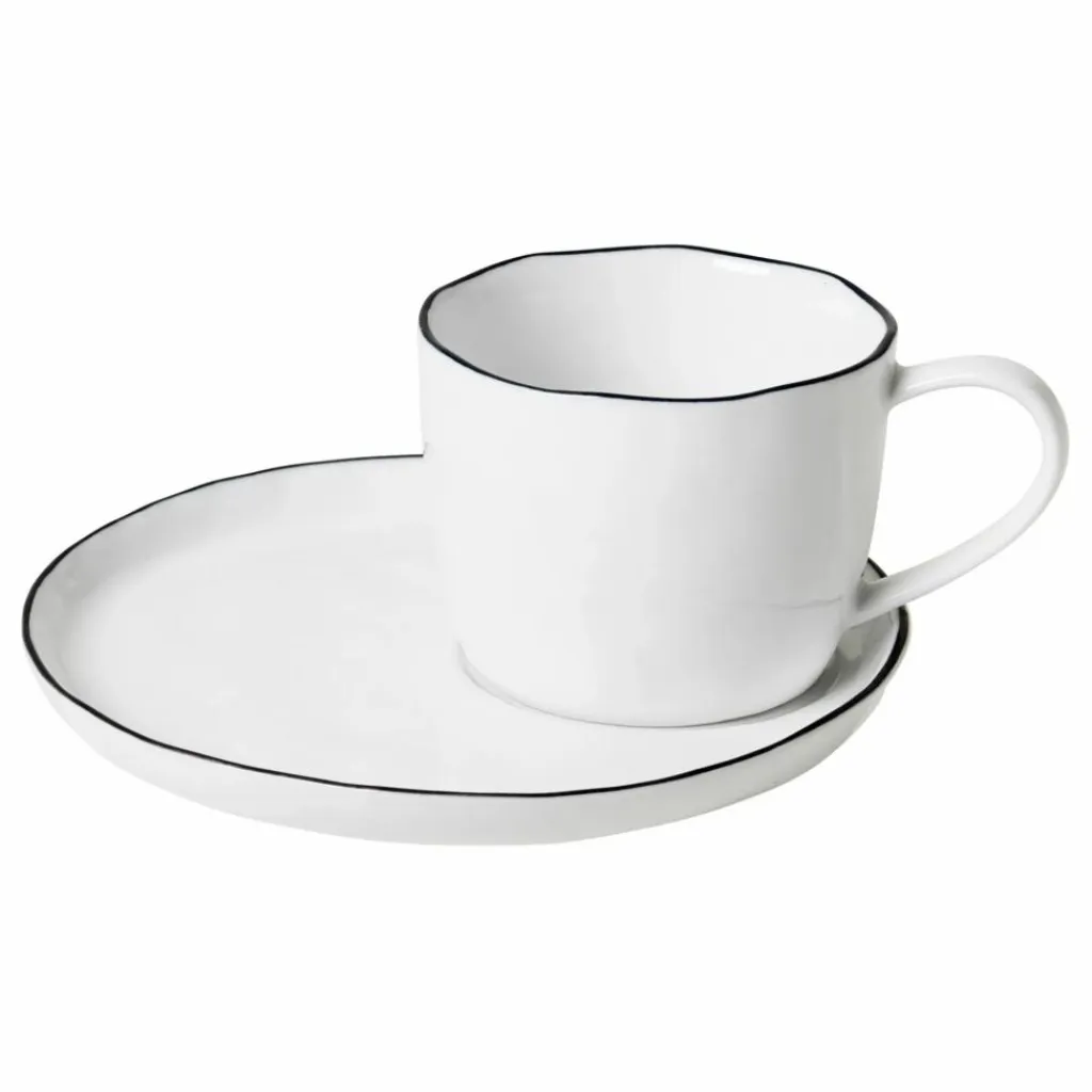 Cet ensemble Salt en grès émaillé apportera une petite note minimaliste à votre quotidien. La jolie bordure à délicatement été peinte à la main.