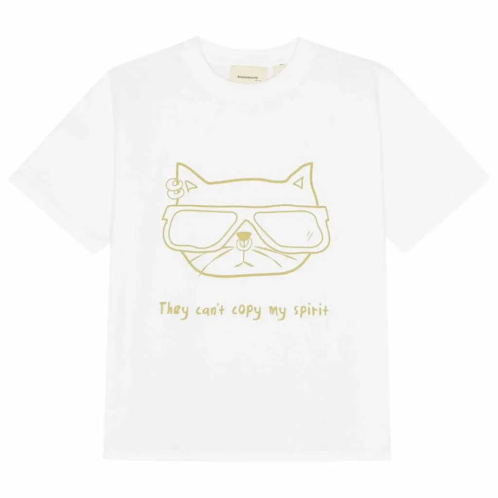 - T-shirt ample et boxy en coton biologique doux, avec un imprimé sur le devant.