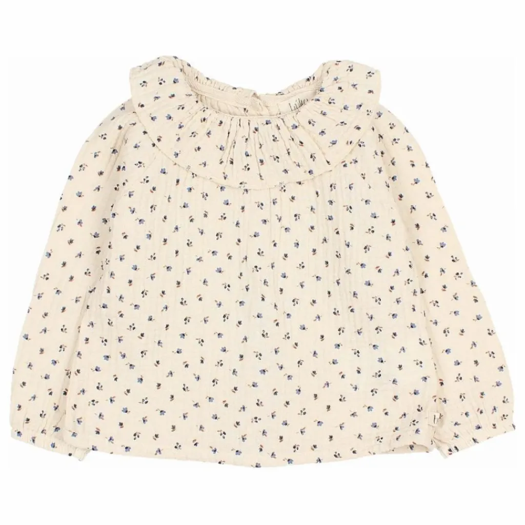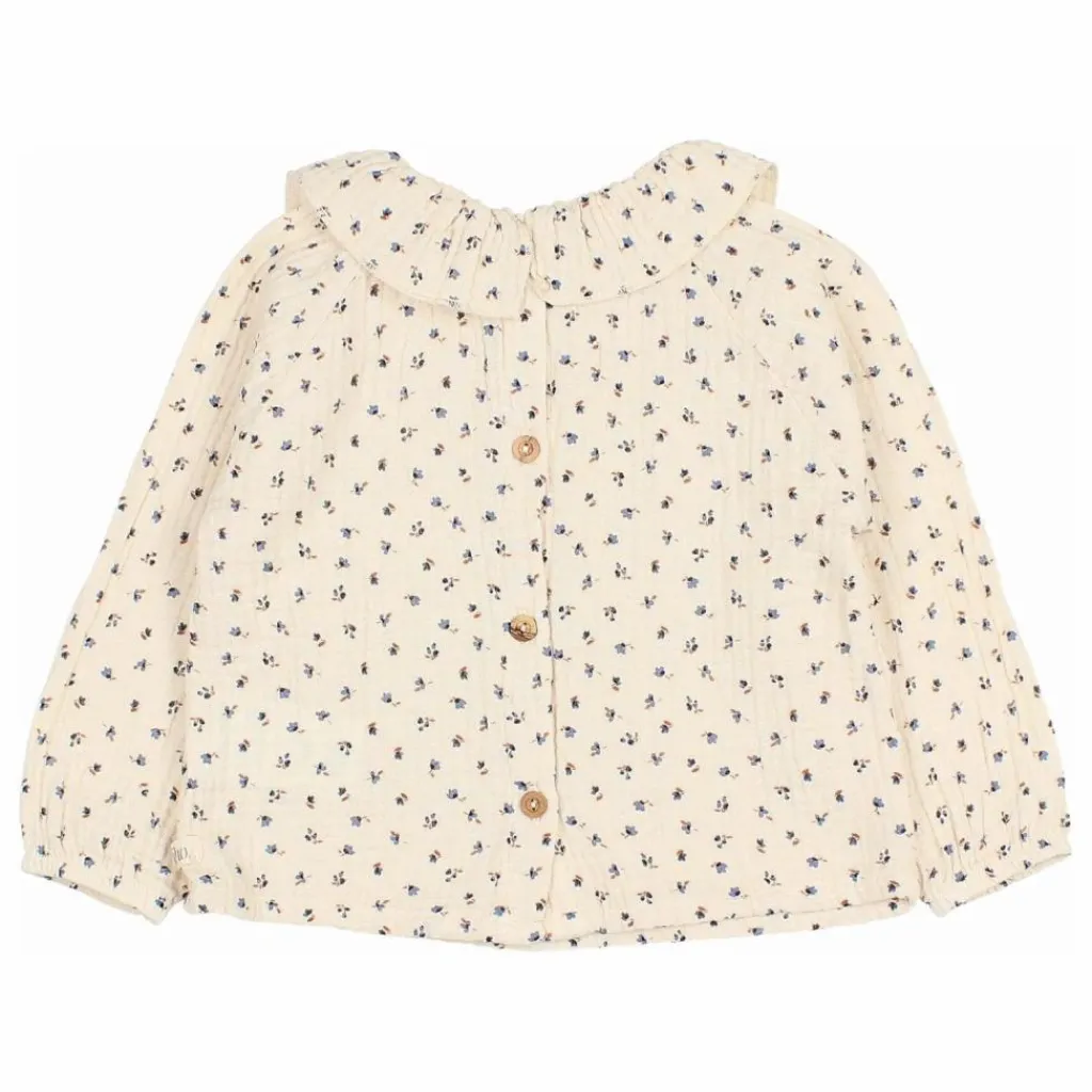 - Blouse en mousseline imprimée « Fall ». Encolure ronde avec volants. Fermeture par boutons au dos. Poignets élastiques.