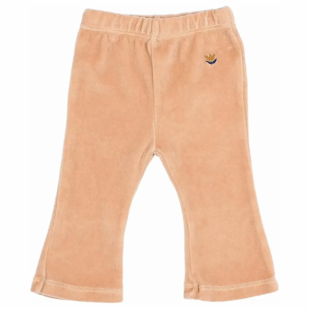 - Leggings évasés en velours. Taille élastique. Fleur brodée sur le côté.