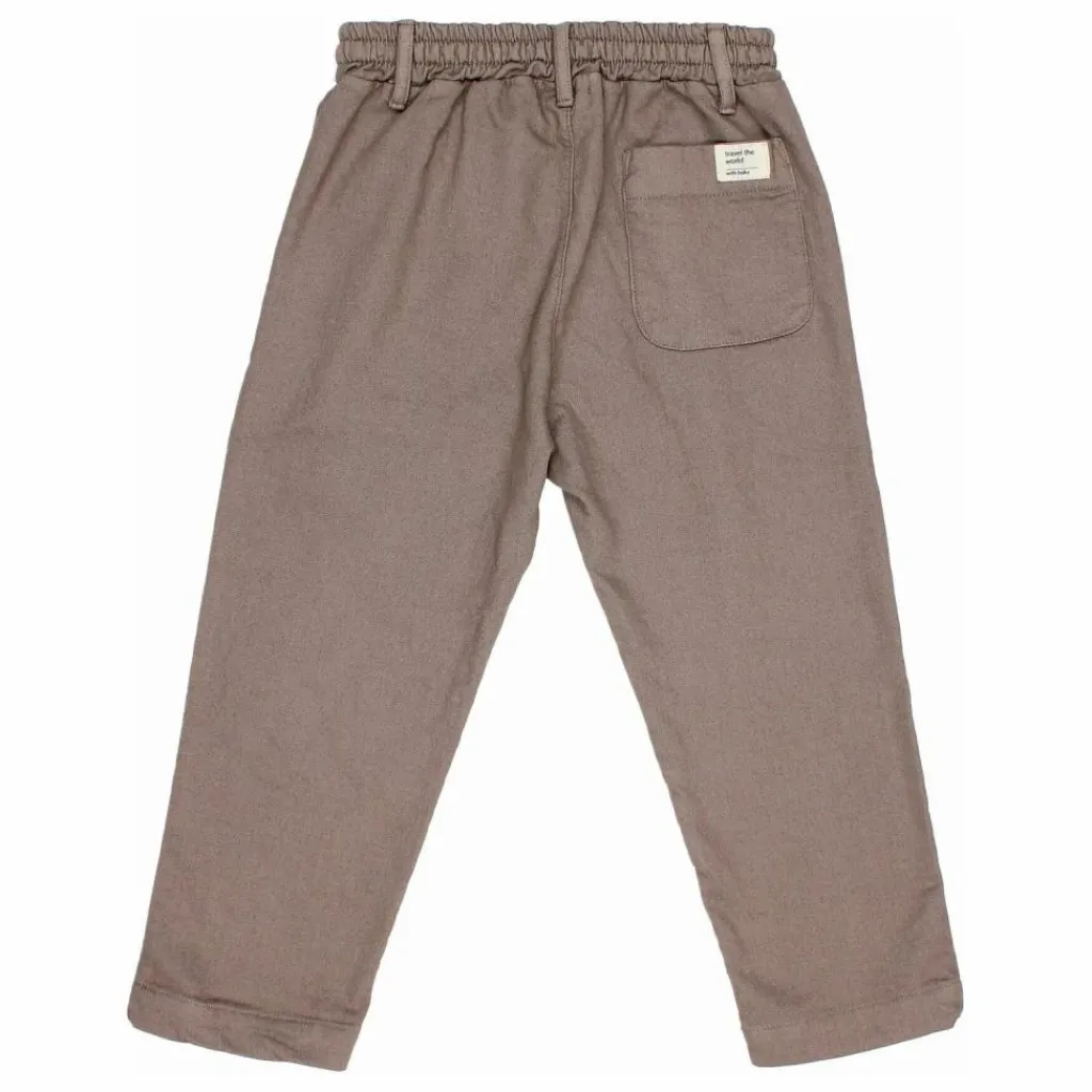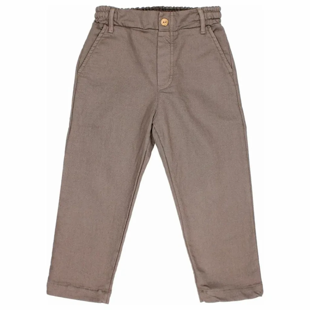 - Pantalon confortable en coton. Taille élastique avec cordon de serrage intérieur pour l’ajustement. Passants de ceinture et bouton décoratif à la taille. Poches sur le devant. Poche Plastron au dos avec étiquette décorative.
