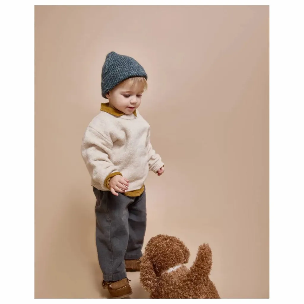 - Pull en maille mélangée. Col rond avec fermeture à bouton. Poignets et ourlets côtelés. Étiquette sur l’ourlet.