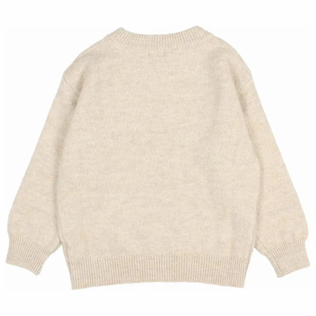 - Pull en tricot mélangé. Col rond. Poignets et ourlets côtelés. Étiquette sur l’ourlet.