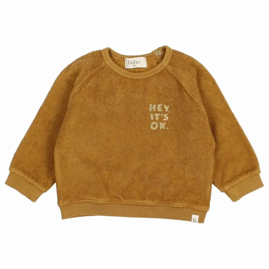 - Sweat en éponge avec motif imprimé sur la poitrine. Col rond avec fermeture à bouton-pression au dos. Manches raglan. Finition côtelée.
