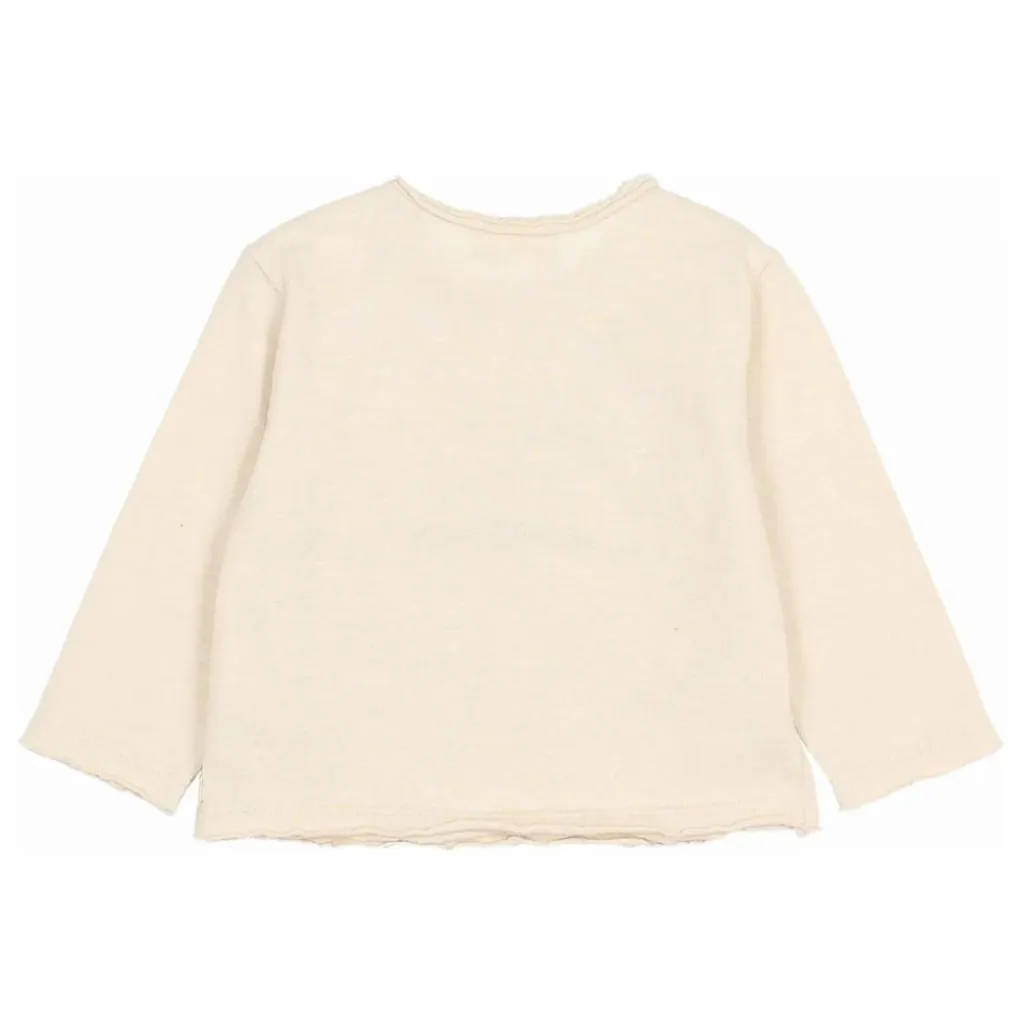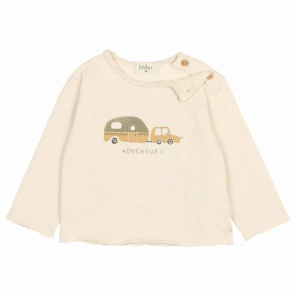 - T-shirt avec imprimé « adventure » sur le devant. Manches longues. Col rond avec fermeture à l’épaule par un bouton en bois.