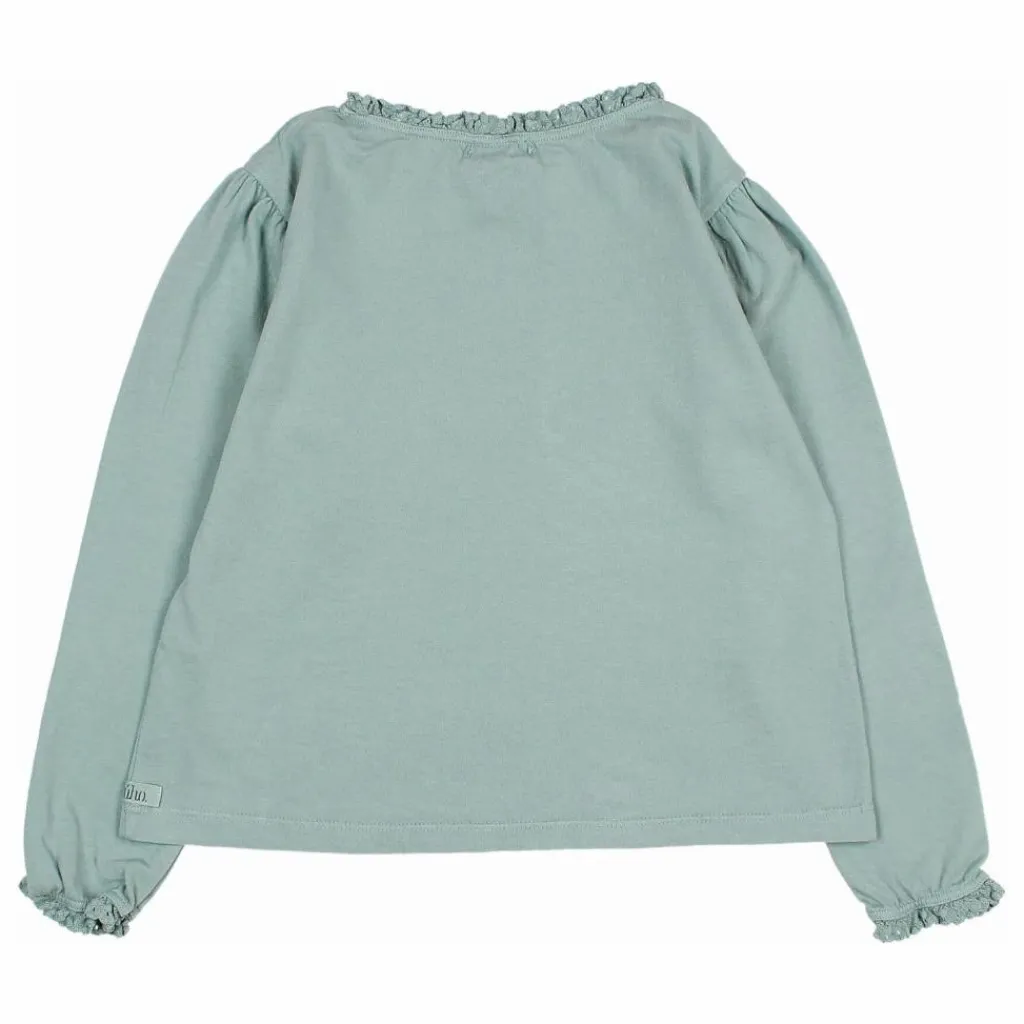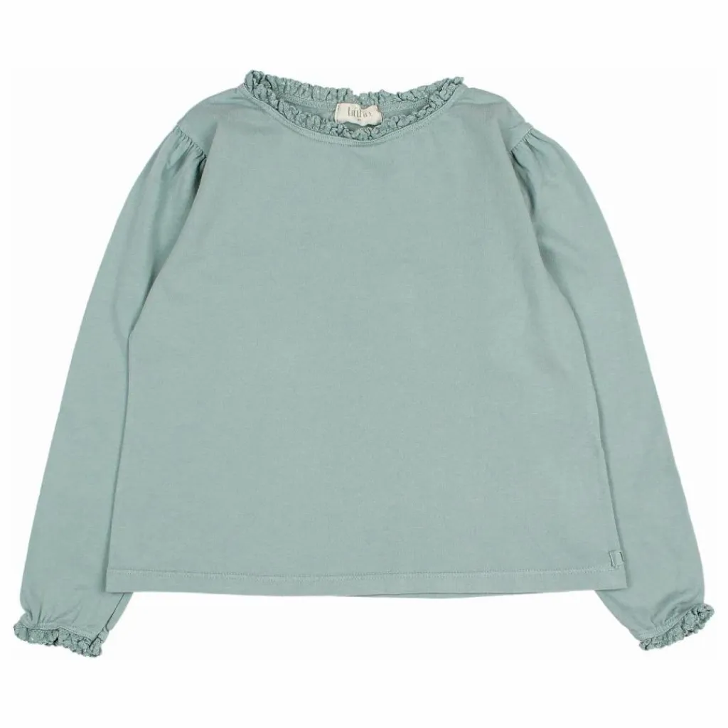 - T-shirt bouffant à manches longues. Détails en dentelle de coton au niveau du cou et des poignets. Col rond.