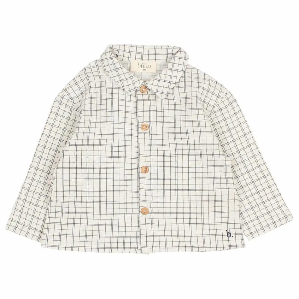 - Chemise à manches longues à mini carreaux. Col chemise. Fermeture boutonnée sur le devant. Détails brodés au bas de la chemise.