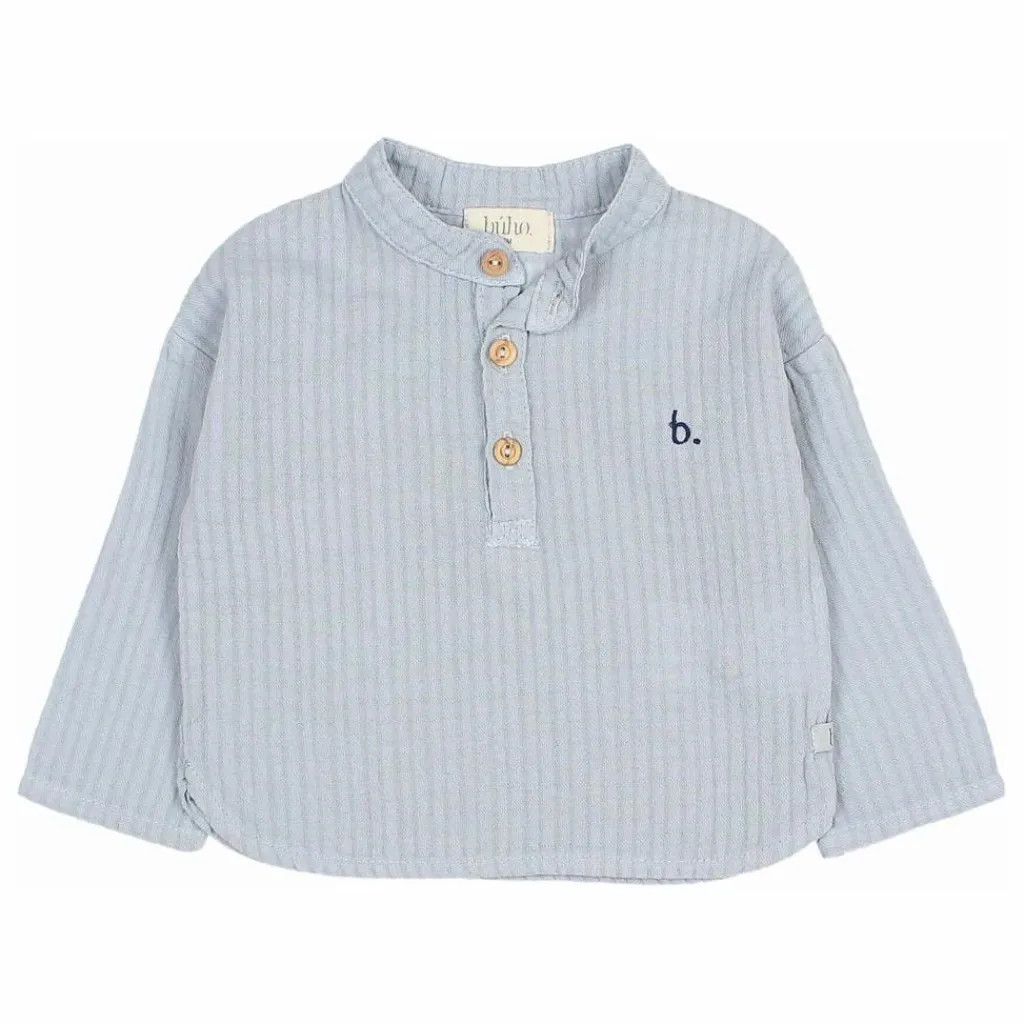 - Chemise avec broderie sur la poitrine. Col mao et manches longues. Fermeture par bouton en bois sur la poitrine.